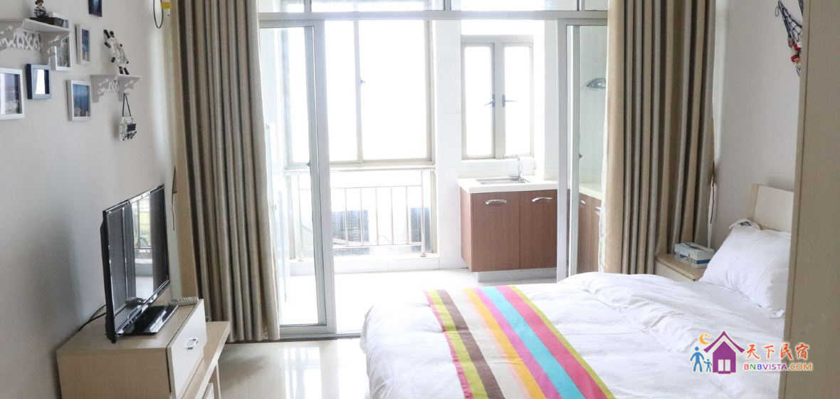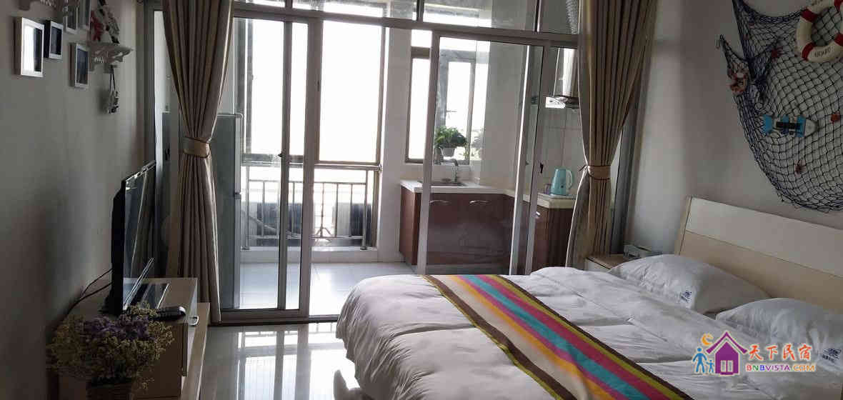 房子户型为面积大约35㎡的公寓,简约地中海风,位于高楼层,朝东(在阳台直接能看到大海),视野非常好,采光极佳。配备有电视机、电冰箱、洗衣机、空调、热水器、1.8*2m宽敞舒适的大床以及20兆高速wifi。位处高楼层不仅可以欣赏日出的美景,还可独享家的宁静与惬意。位于港口区的华联购物商圈,临近华联超市,菜市,广场小吃街等等。楼下有海鲜城,电影院,健身房,网咖,交通也非常便利。
