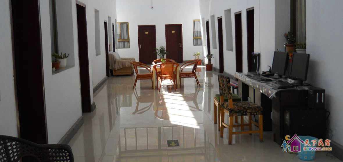 位于敦煌市中心,周边娱乐、餐饮、购物超市一应俱全。步行可至沙洲夜市、反弹琵琶雕像及敦煌风情城。在旅社看到清澈的蓝天给人一种返璞归真的感觉,没有那么多城市中的喧哗、充满了宁静。感受不同就在这里,在大厅里晒太阳,你来吗?