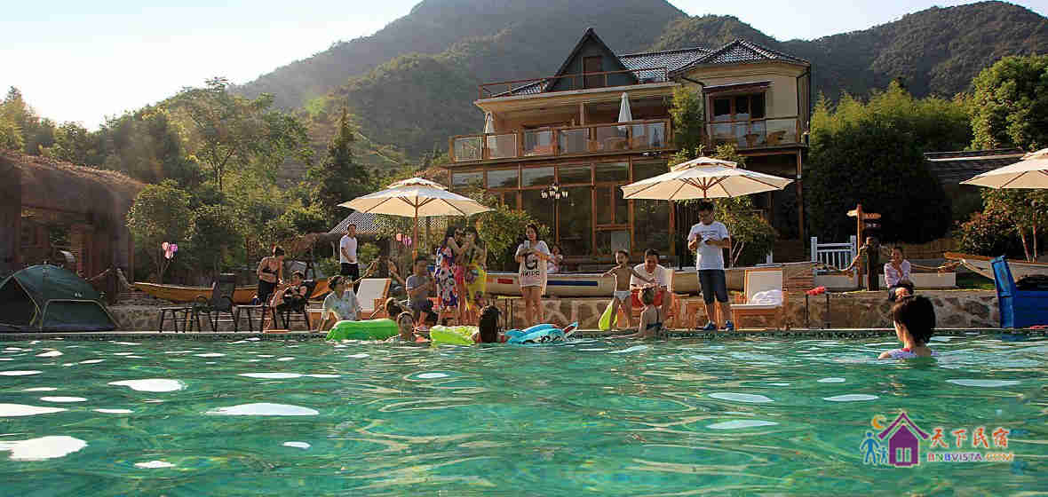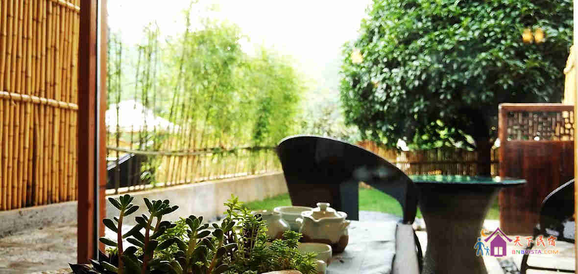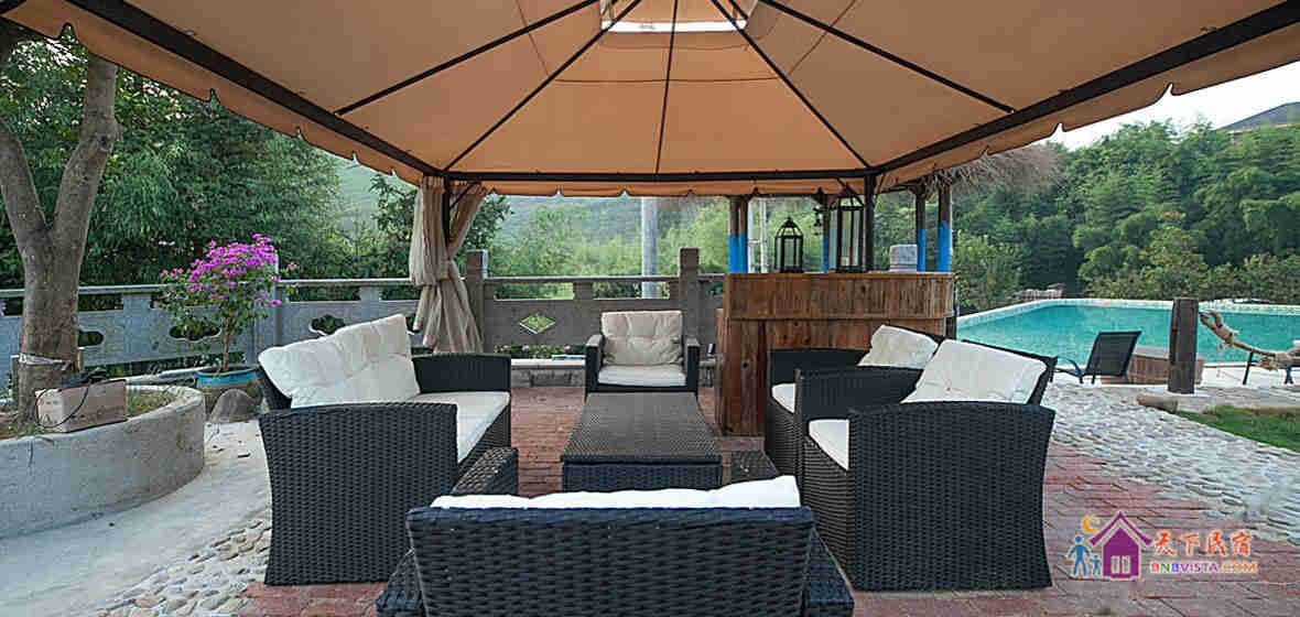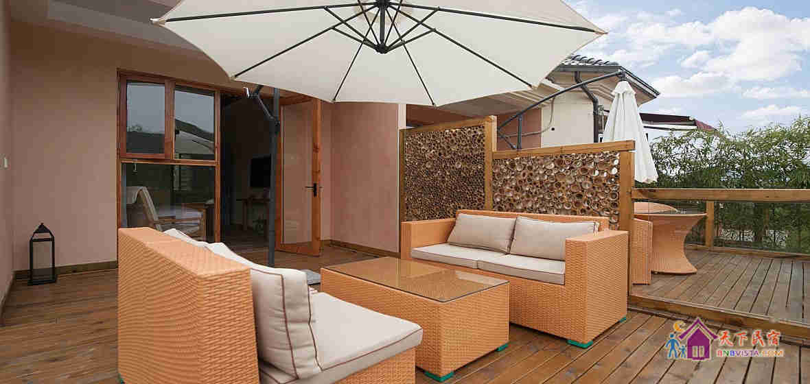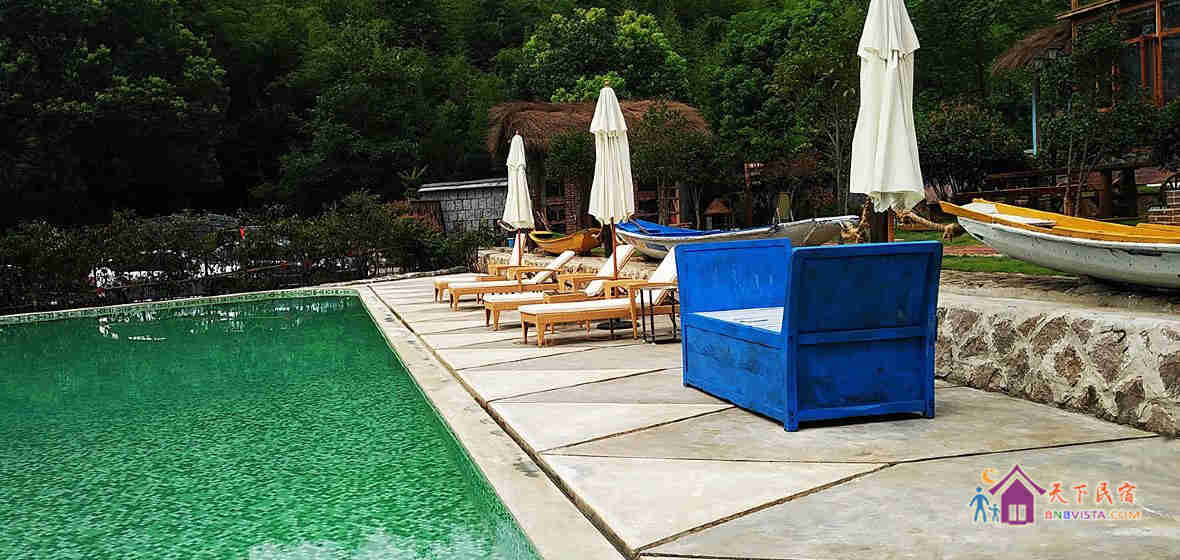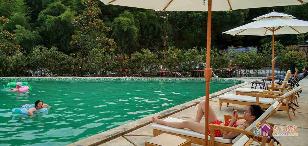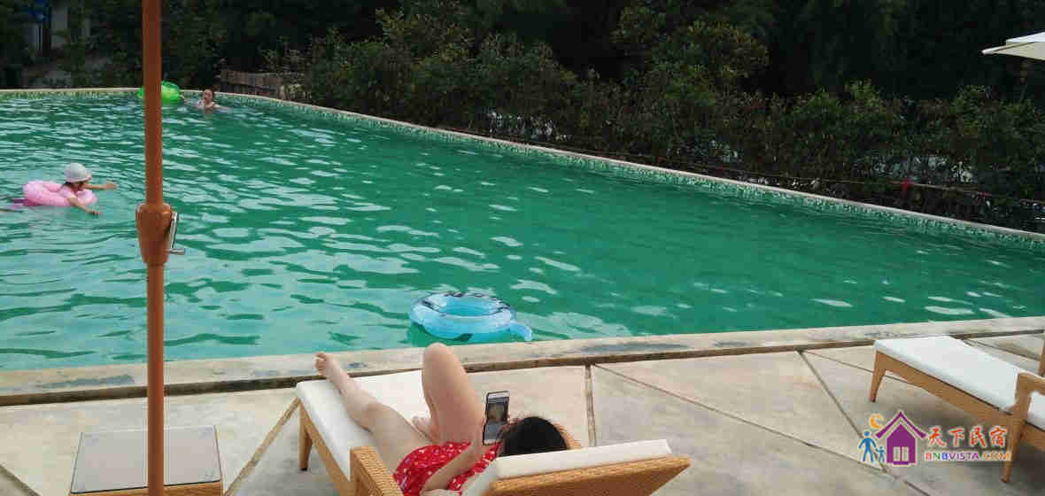 民宿设计独特,占地约3千平方米,有着独门带院私密禅意房、独立观景大露台房等。院内设有大型无边泳池、儿童游乐区、烧烤区、休闲区等。