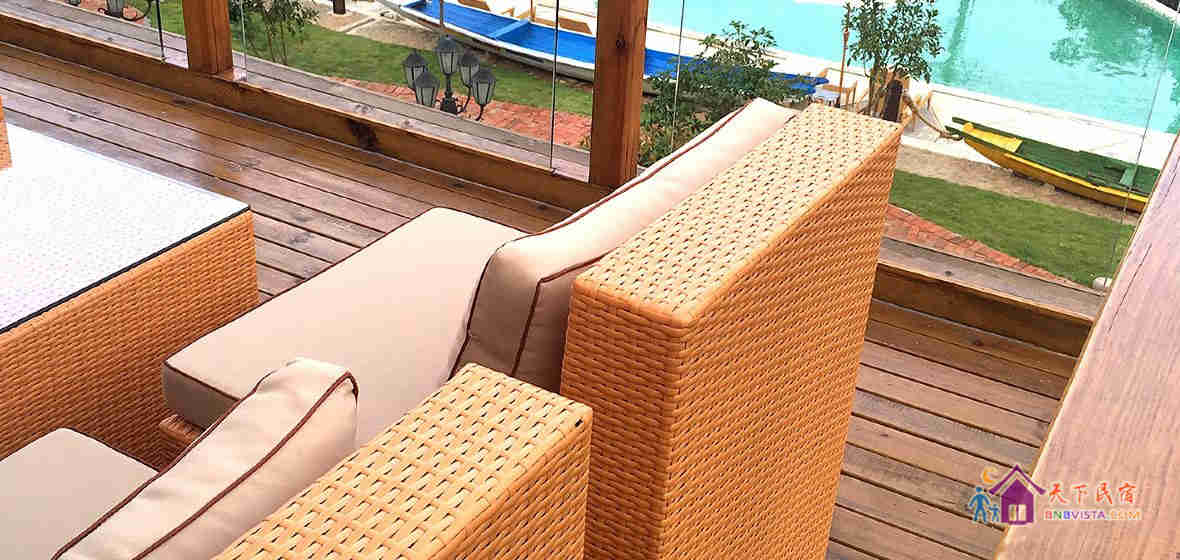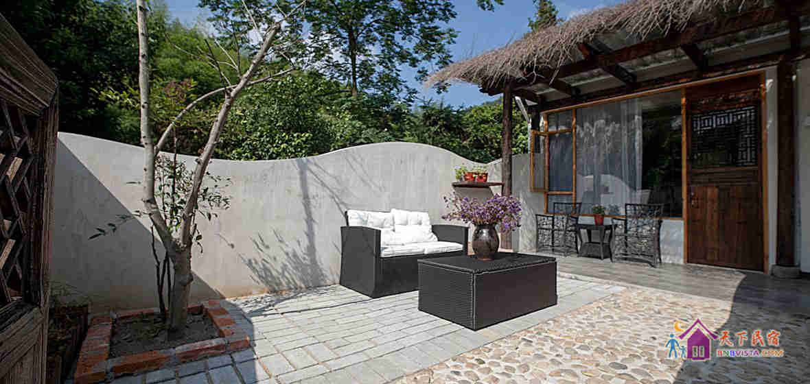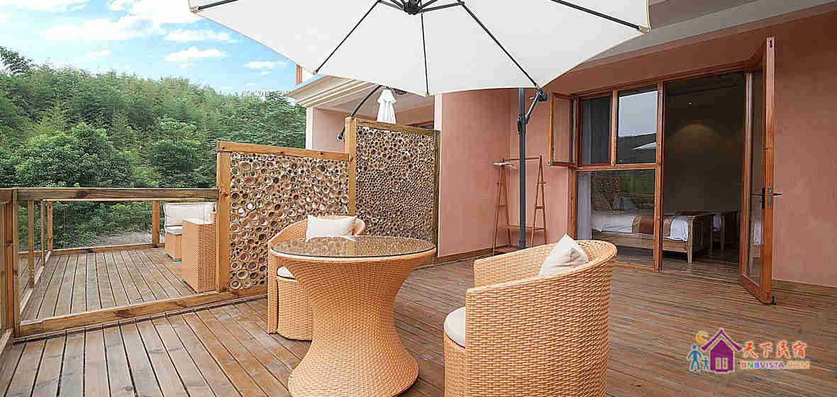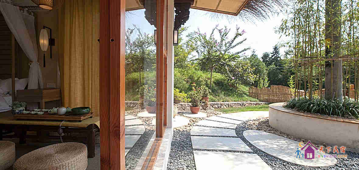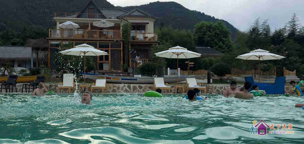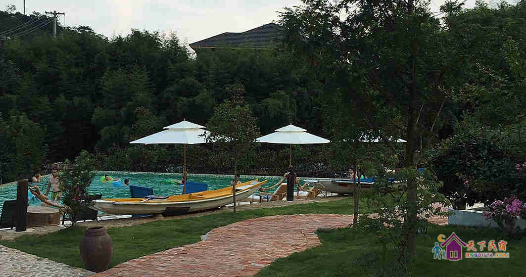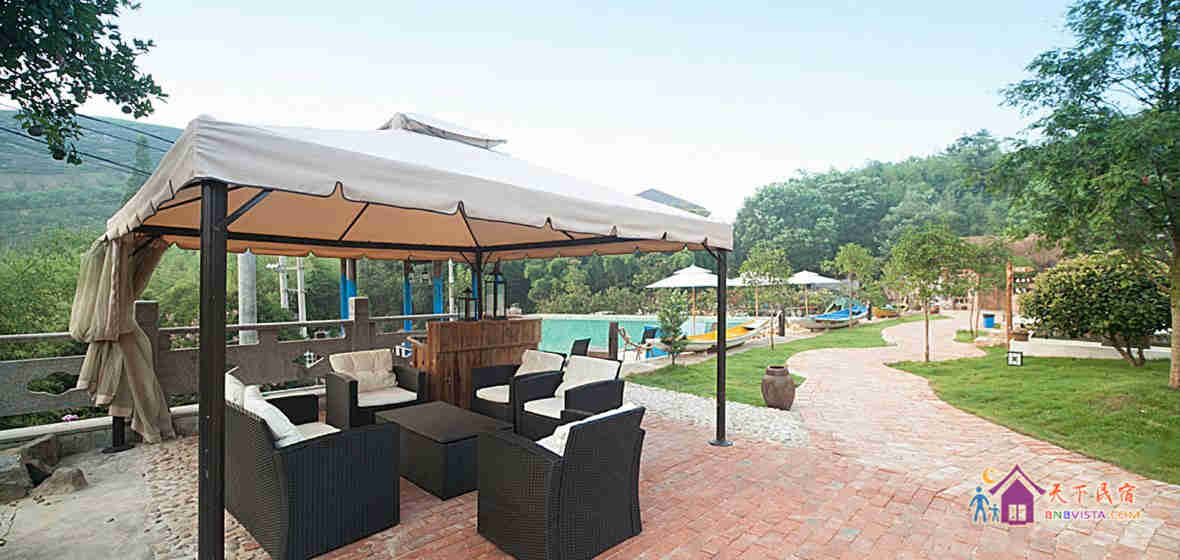民宿设计独特,占地约3千平方米,有着独门带院私密禅意房、独立观景大露台房等。院内设有大型无边泳池、儿童游乐区、烧烤区、休闲区等。
