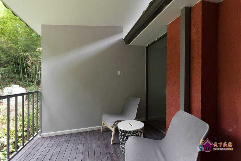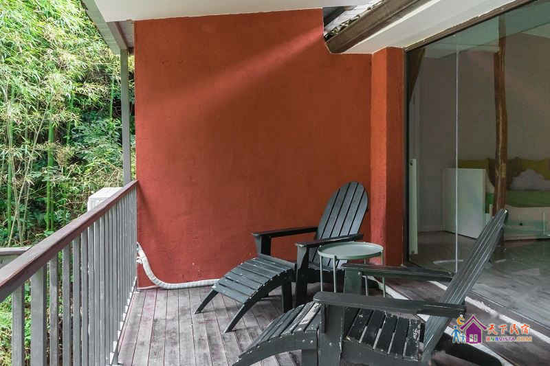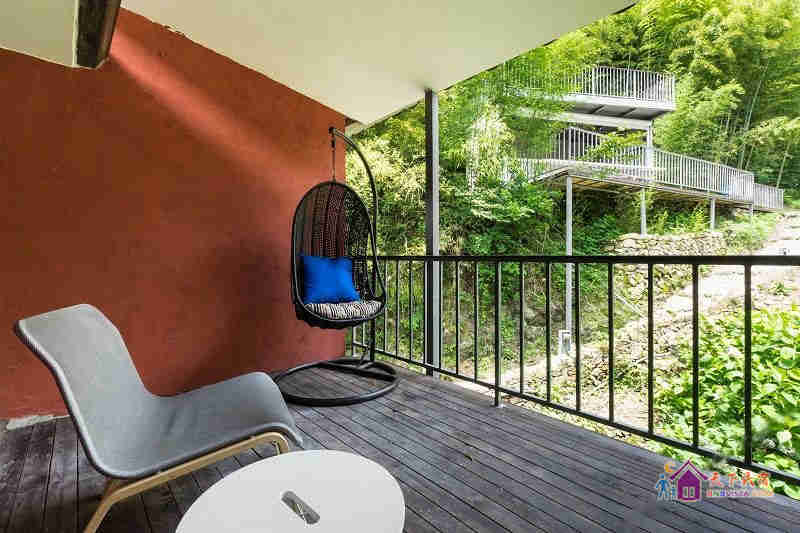 莫干山香巴拉位于莫干山镇劳岭村岭坑。建筑风格是在三十年房龄的破败老旧农舍改造为现代西班牙风味的农庄。但是这粗木、泥墙、石阶,在两位设计师眼中都是独一无二、不可多得的材料。两个人在专业上各自发挥所长。