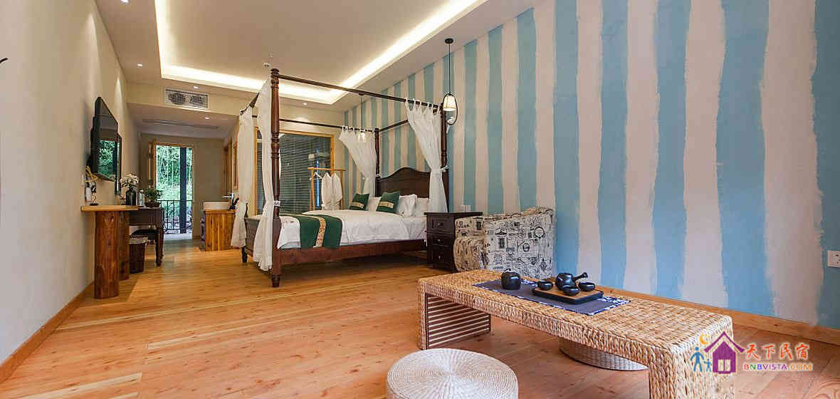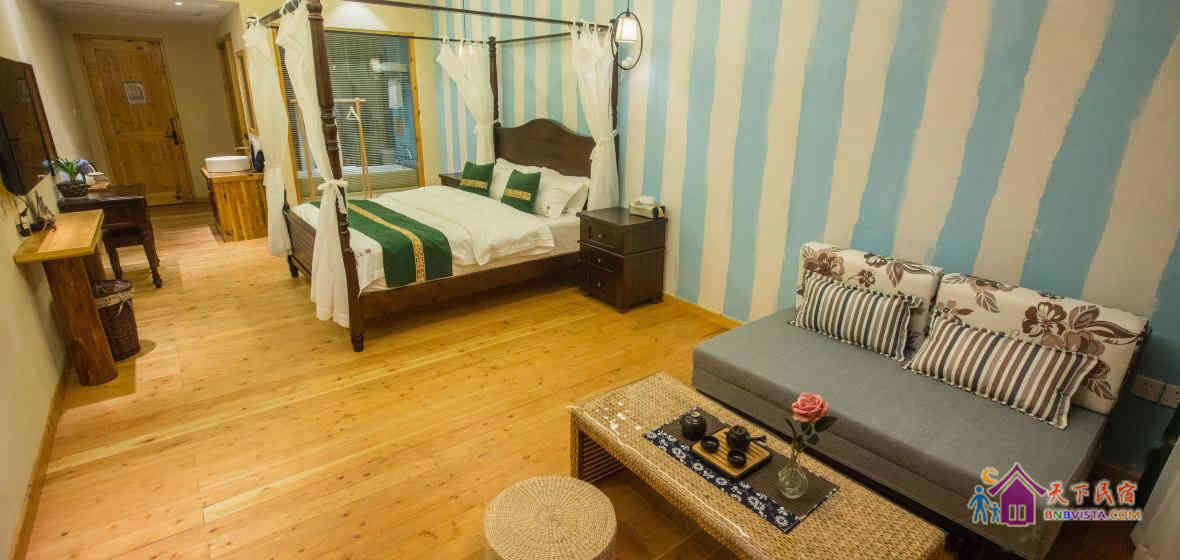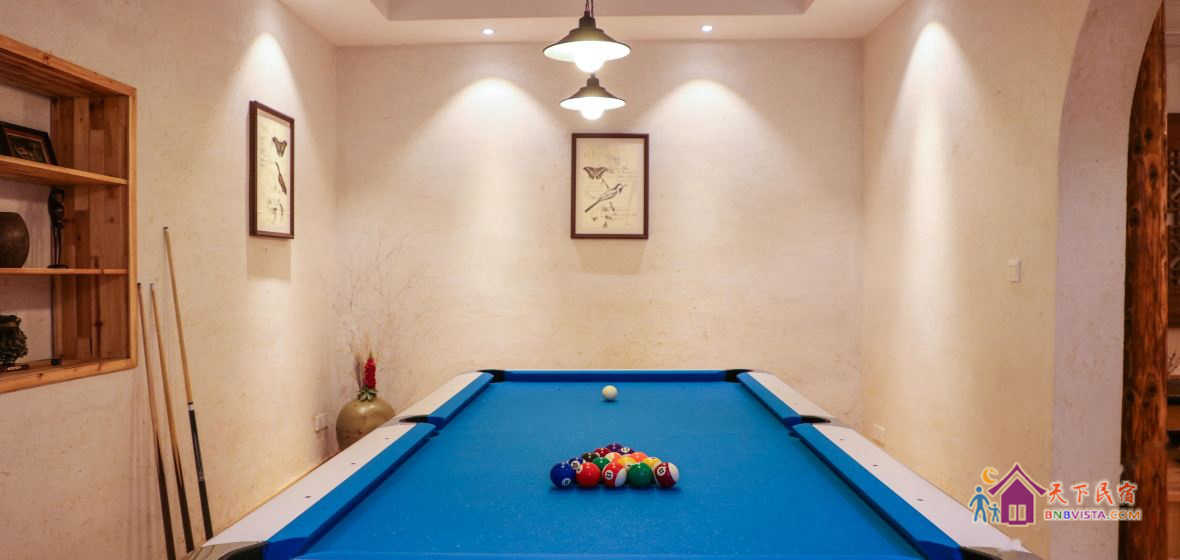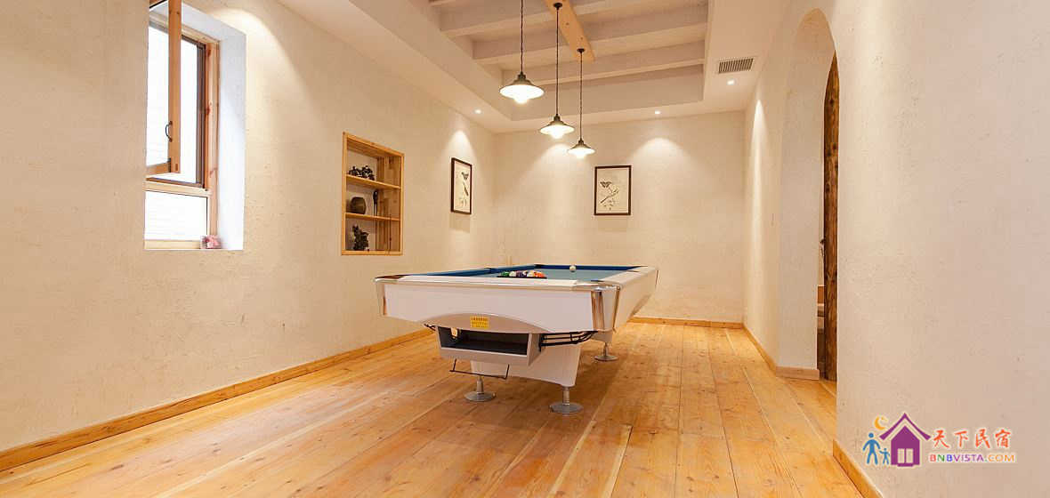 客栈每间客房都拥有私密大阳台,配置丰富但风格各不相同,一楼整层都是公共空间,布置与色调,充满了温馨、舒适、文艺、清新,设有桌球室、KTV、棋牌室、茶室等,总可以找到一个适合自己的角落,是家人朋友休闲度假,公司小规模聚会的理想场所。