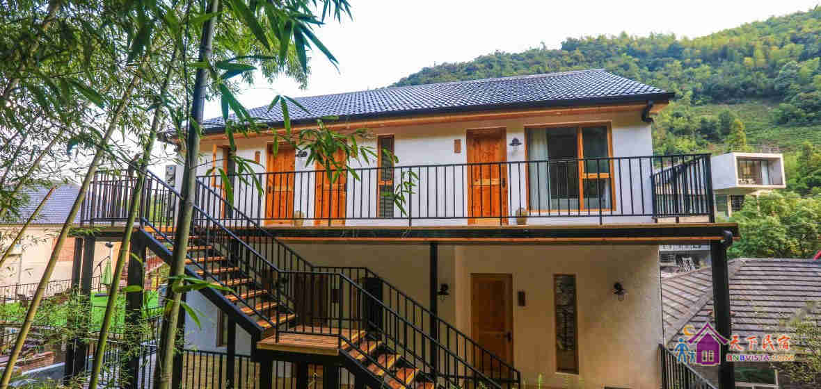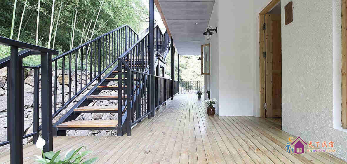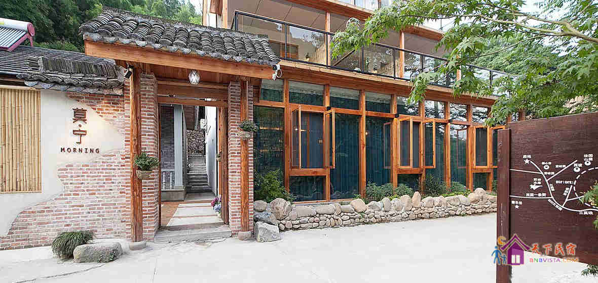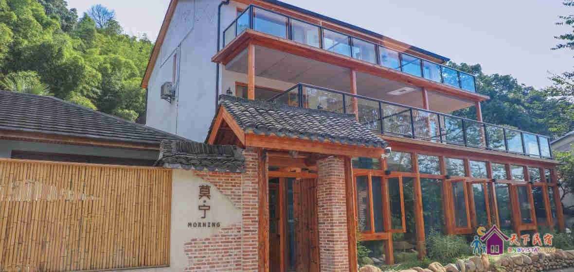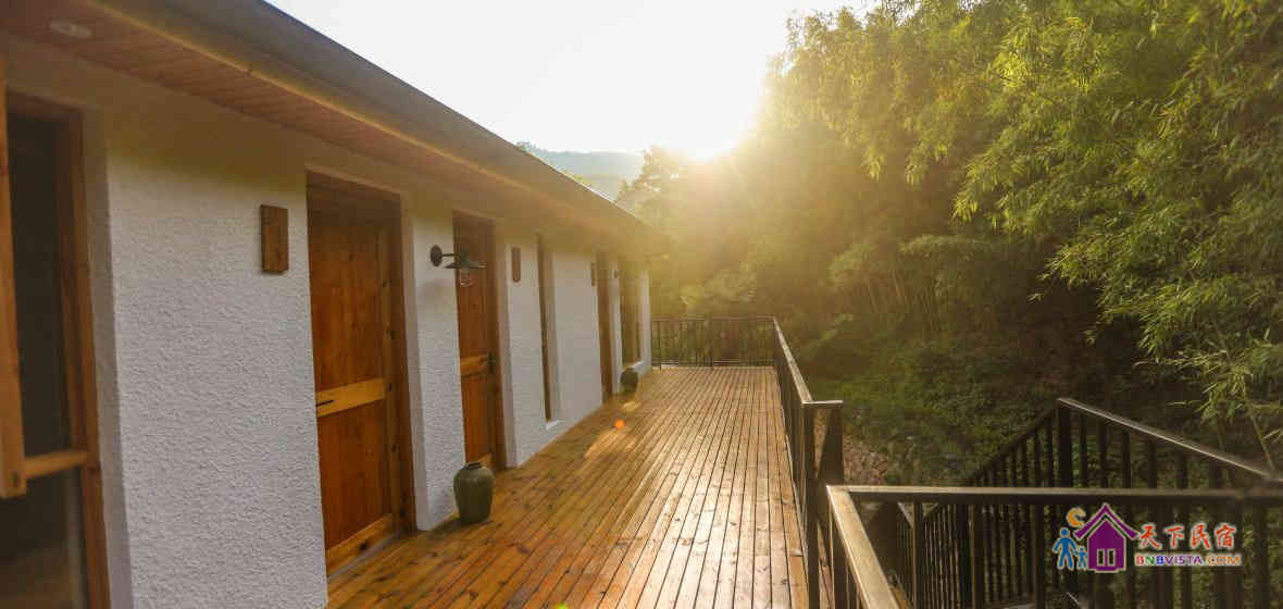 莫干山莫宁客栈隐逸在莫干山山脚下,谷幽境绝,掩映在竹林绿荫之中,四周修竹满山,绿荫环径,泉水潺潺,可以用清、静、绿、凉四个字来形容。出门往上可沿登山步道直达剑池景区(徒步上山不需购买景区门票);往下步行10分钟左右即可到达民国风情小镇。