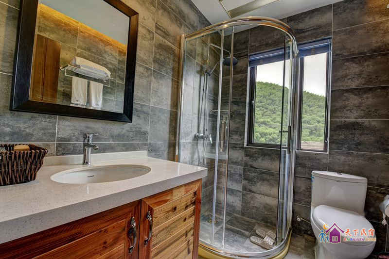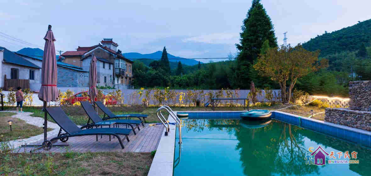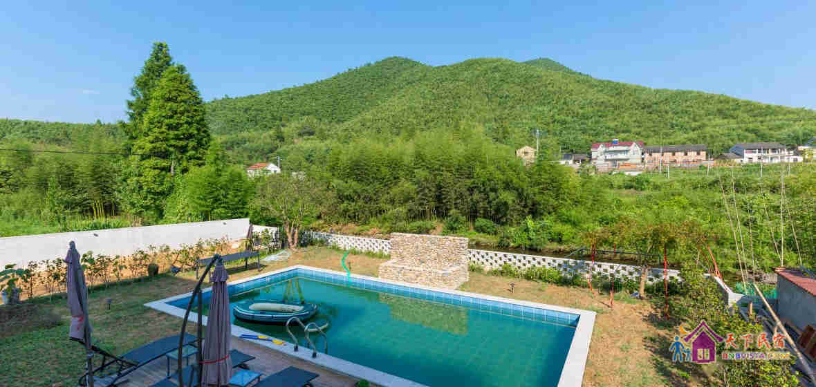 民宿客房户型多变、设计风格多样,同时配备露天泳池、天然溪潭、儿童蹦蹦床、山地自行车、麻将棋牌室及小型商务会议室等多项娱乐设施。客房洁具皆选用品牌品质,布草完全按高星级酒店标准配置,热水即开即热。部分房型更配备超大观景露台,360度尽享莫干山水间。