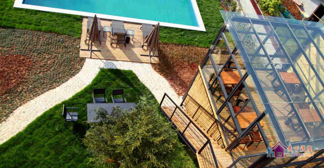 纯实木手工雕刻的内饰、土陶、青砖、雨花石铺路,一个个柔软而经典的记忆元素,构建了一个现代人梦寐以求、等待千年的“世外桃源”,是一幅人与自然和谐诗意的唯美画卷。这里不仅有莫干小镇生活习俗的缩影,有清一色的青瓦白墙,还有沃野千里的田园风光,渔歌、炊烟、鸡鸣狗吠,玫瑰红酒,处处彰显着一份恬静与唯美。