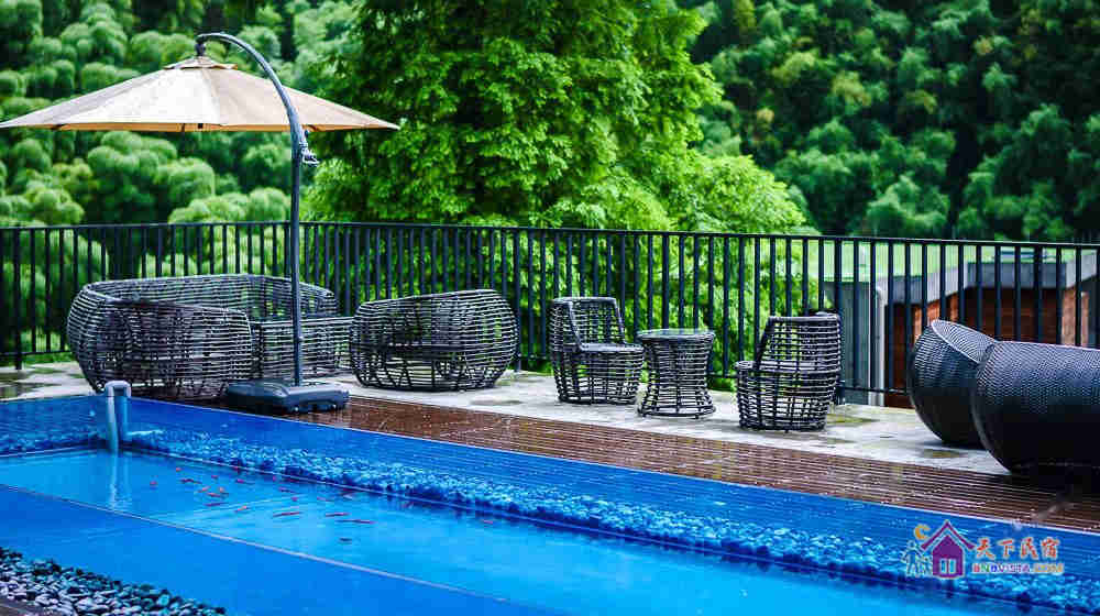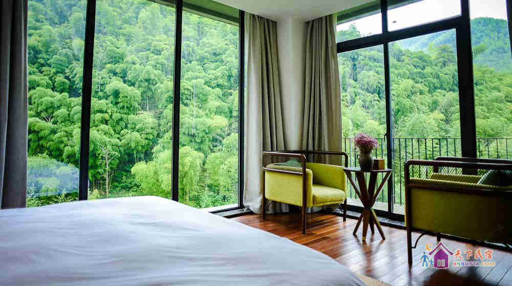 莫干山悠然九希度假村位于莫干山北麓,占地20多亩。阳光吧,水下餐厅,依茶而座的空中露台,可练瑜珈的清溪台,独享惬意时光的醉林台。拥有26间客房,其中8间为双床配置的园景房,18间别墅房。别墅房根据不同家庭出游需要,分2、3、4、5、6间不同房间数组成的别墅楼,每栋别墅拥有独立的私家花园,满目鲜翠欲滳的竹林,耳畔是潺潺溪水,山水是画,人在画中歇。