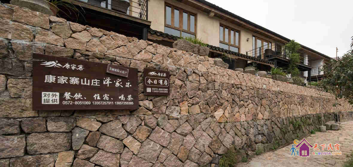 康家寨位于著名的避暑胜地德清莫干山脚下的莫干山镇劳岭村岭坑自然村,距离著名的洋家乐的发源地三九坞村1.5公里,离裸心谷、法国山居都在2公里之内。这里四面环山,空气清新,犹如世外桃源,康家寨山庄在参考裸心谷、法国山居的装修风格后,于2014年花费180万元重新装修。是久居都市的您休闲度假、养身裸心的绝佳去处。酒店有餐饮服务,老板兼大厨曾是莫干山大酒店首席大厨,辅以山里的特色新鲜食材,一定令您流连忘返。