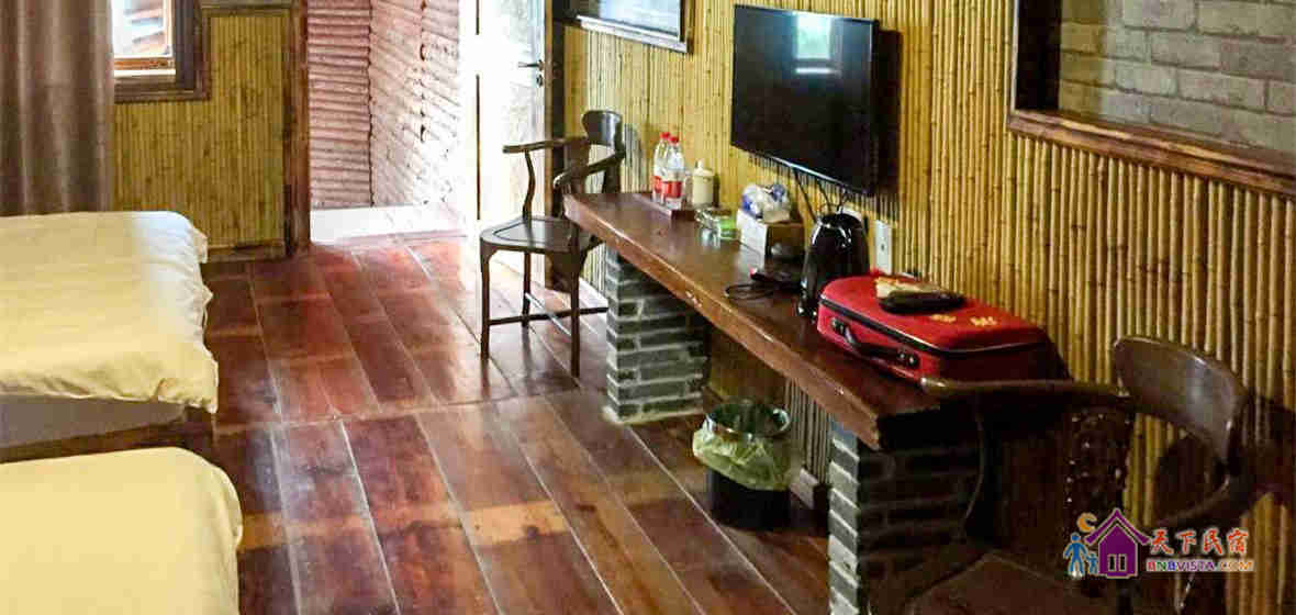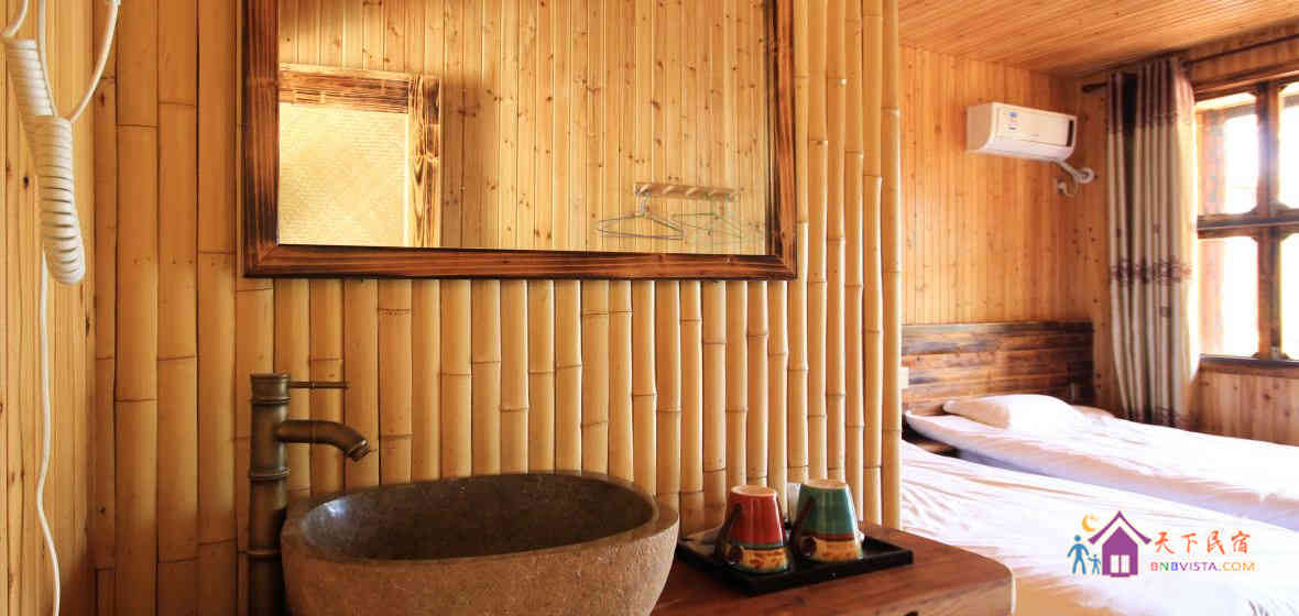 屋内的装潢设施,以竹木为主,同时环绕低碳环保主题,利用旧原料,根据房子本身的特点进行设计,装饰体现出自然与现代感的融合。设有众多房型,客房淡雅清新,设施完善。旅店提供旅游票务、叫车、接机、婚宴、自行车租赁等服务,让您住着踏实、住着舒适。