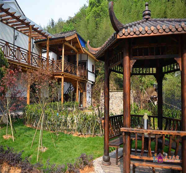 黄金树山庄地处风景优美的避暑胜地莫干山风景区,占地二亩,保留了原有的环境的地貌,远处茶林竹海,门前小溪流水围绕着二颗黄金古树,庄内亭台楼阁,黑瓦青砖,将自然、舒适、雅致融为了一体。相聚莫干山,结缘黄金树。