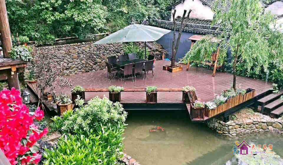 黄金树山庄远离城市的喧嚣,呼吸绿野的芬芳。山谷中,远处是茶山和竹海;近处,各种植物一片翠绿。池塘中,鱼儿欢快的游玩。这里就是德清莫干山的“洋家乐”黄金树山庄。