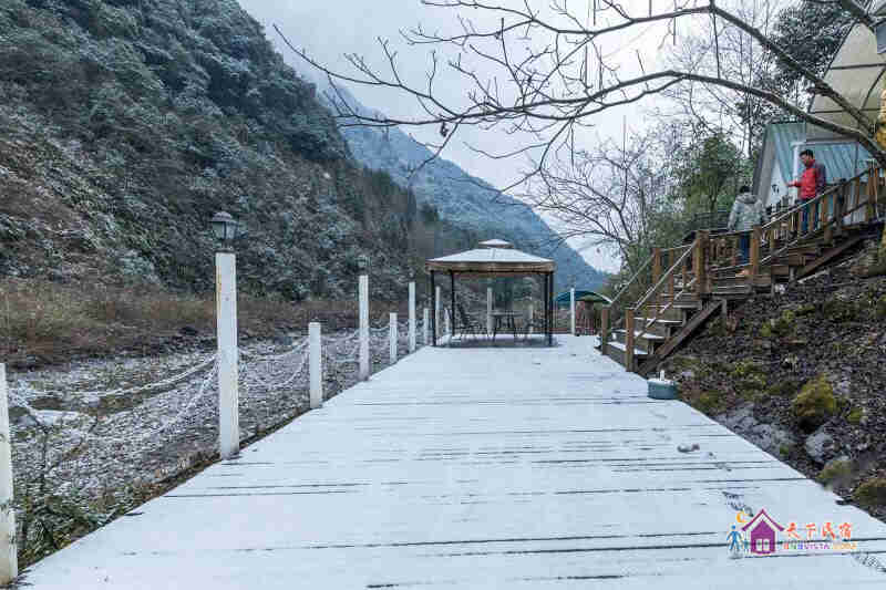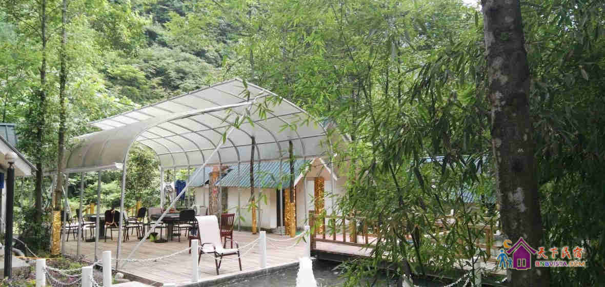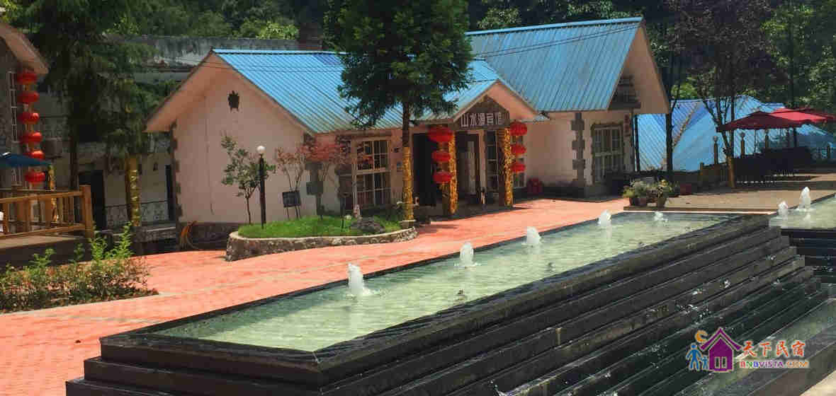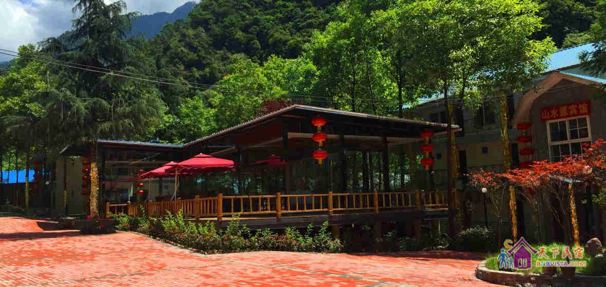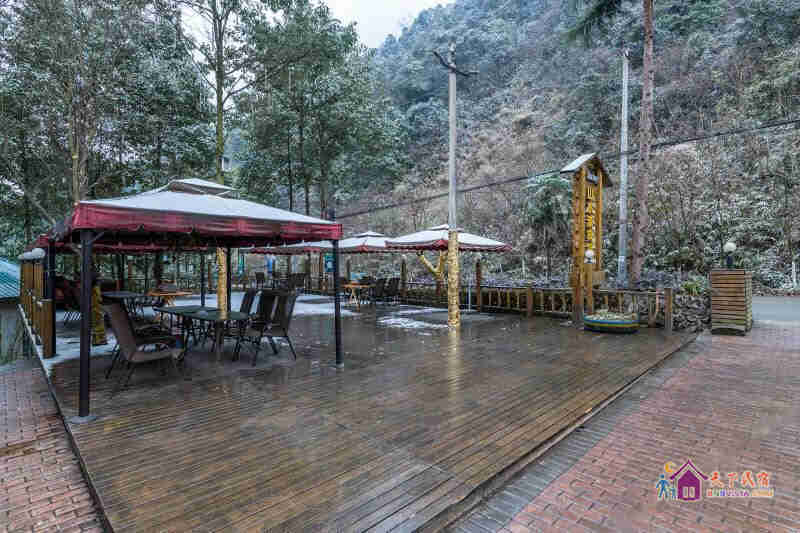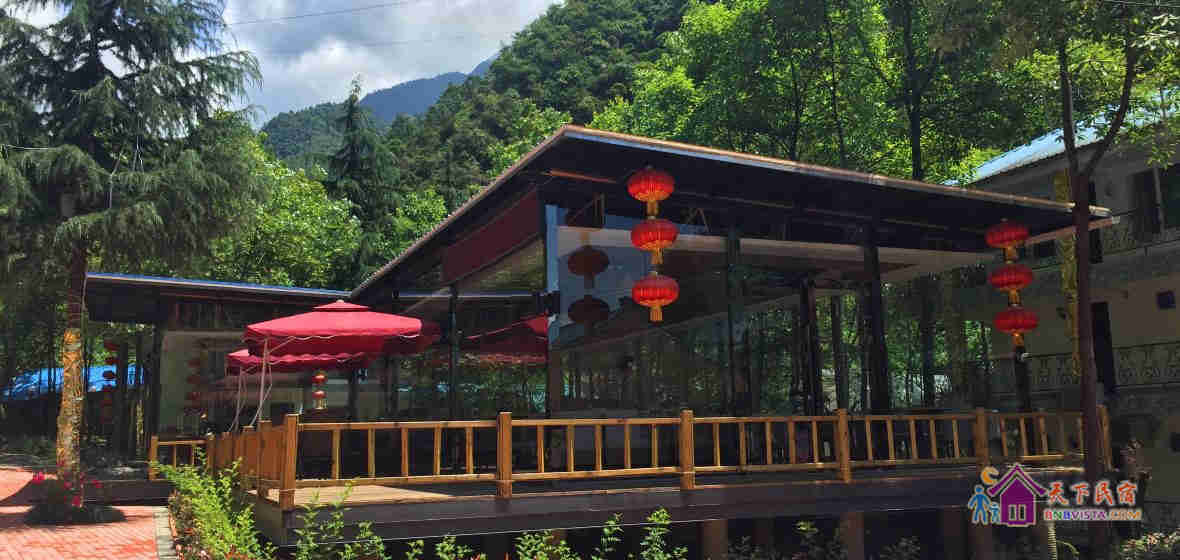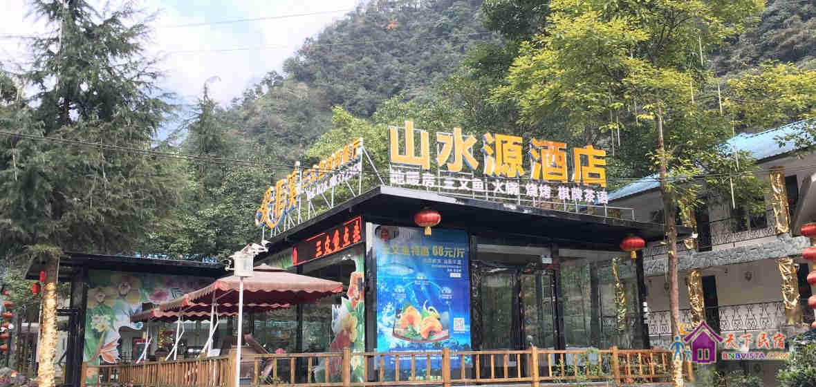 西岭雪山山水源宾馆位于大邑西岭镇打索场三华村,临近西岭雪山后山景区入口,风景优美,临水而立。