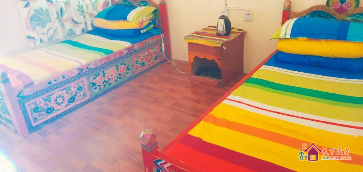 - 所有房型: 榻榻米双标,榻榻米家庭套房,三人房(床位),藏式雕花普通双人房,榻榻米大床房,朋友五人间,朋友四人间,朋友七人间
