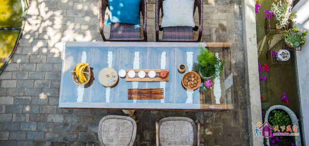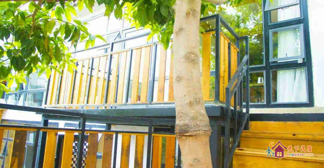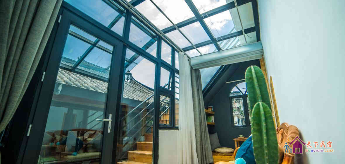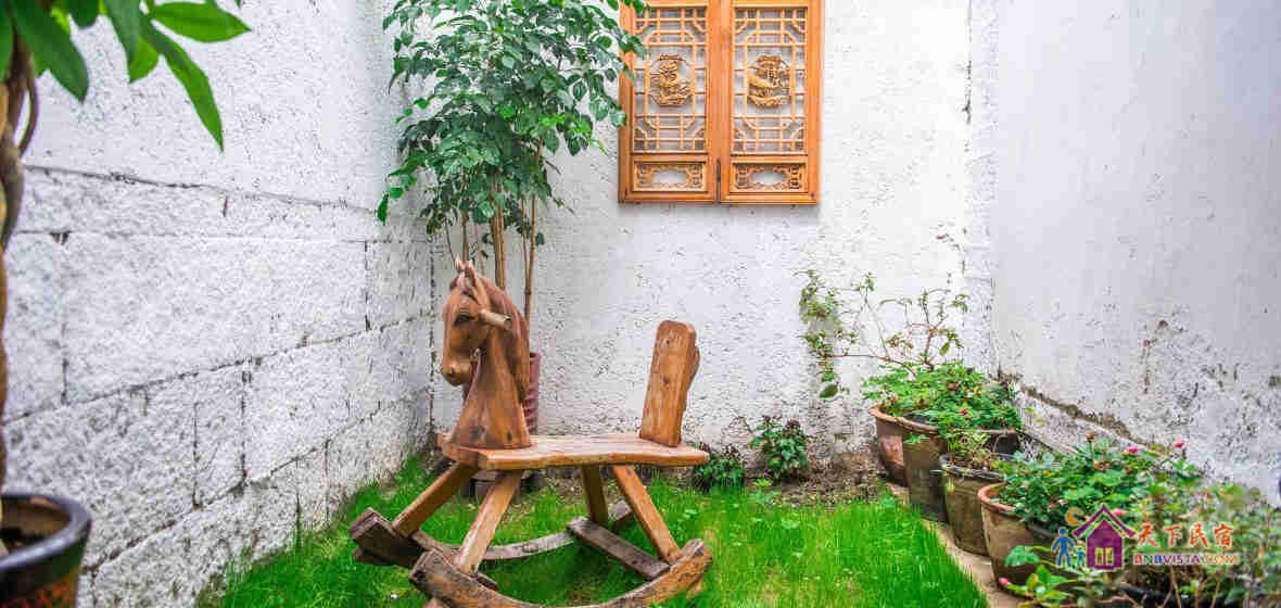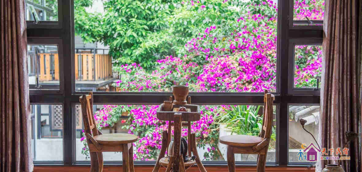 隔壁平顶小楼温暖清新。顶楼休息区登台远眺,苍山美景尽收眼底。庭院内一株近20年的含香树(也叫缅桂树)从玻璃房穿透而出,在书房内留下匝地浓荫和淡淡清香。阳光肆意地倾洒在院子里,一杯茶,一本书,品味悠闲、惬意的大理时光!