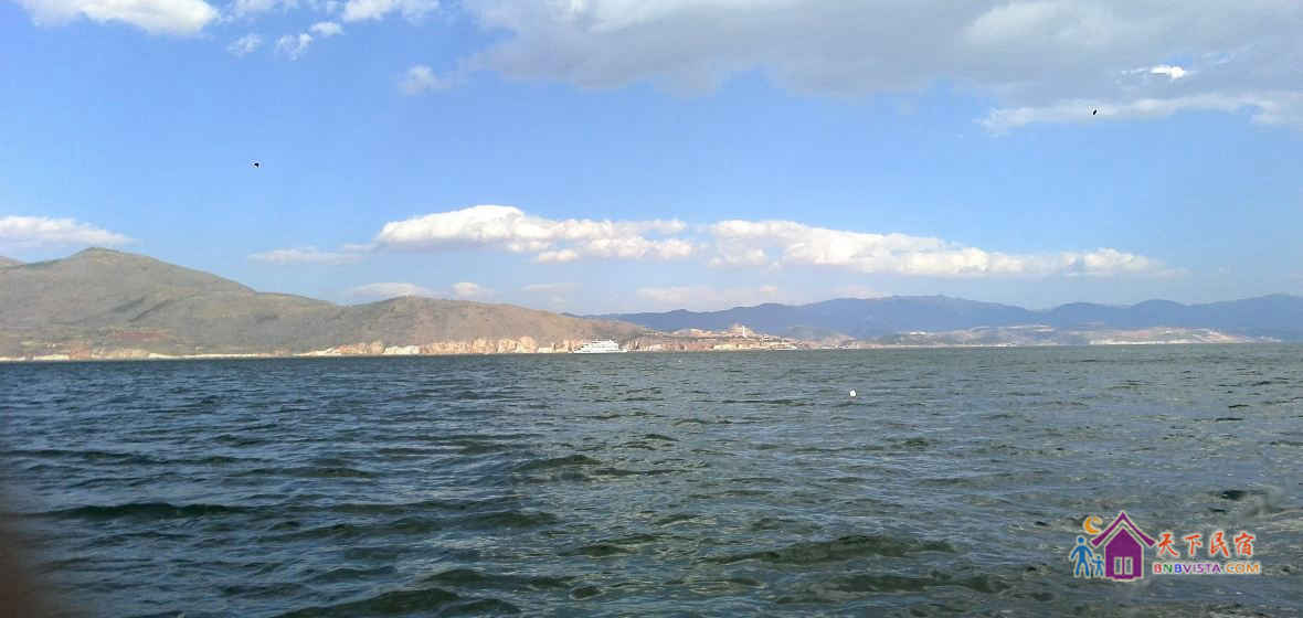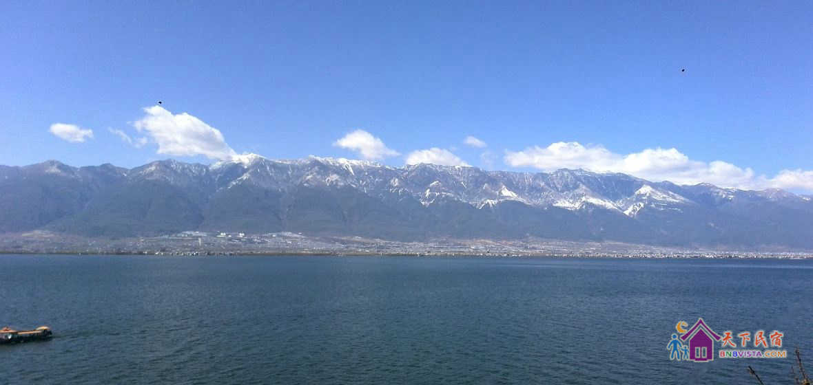 晨起,屋前碧澄澄似蓝天的洱海,白云倒映处若一叶扁舟。泛舟于其中享诗画一般的宁静而悠远的意境。