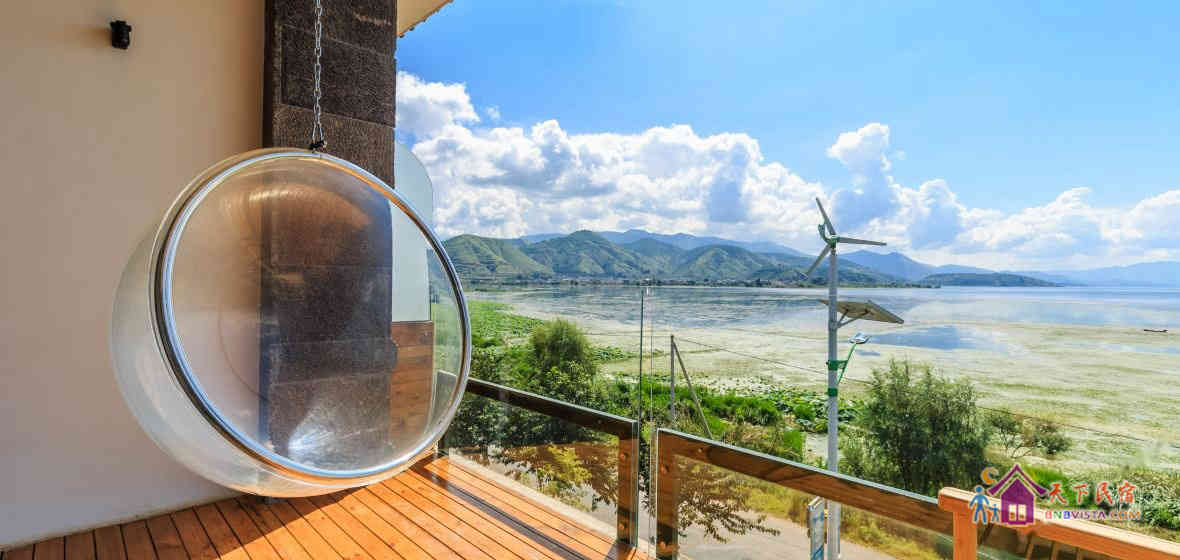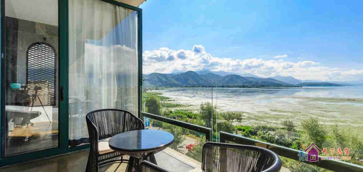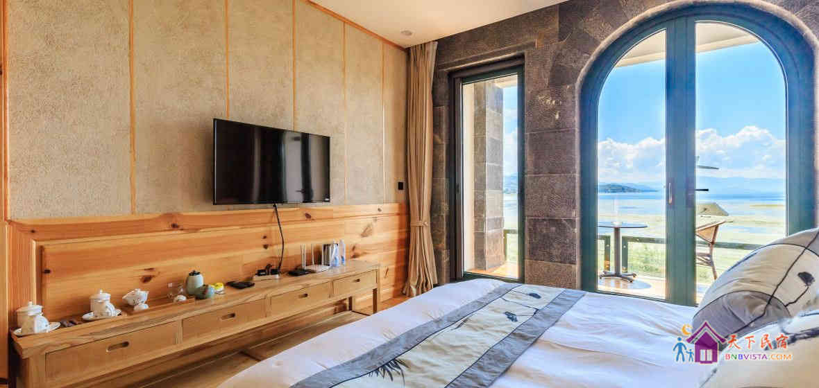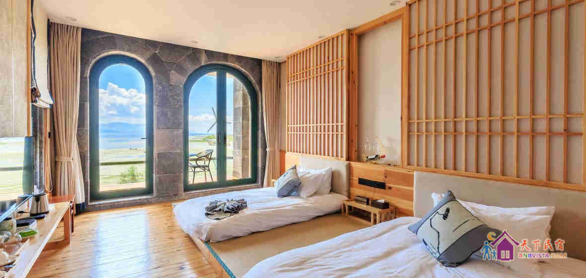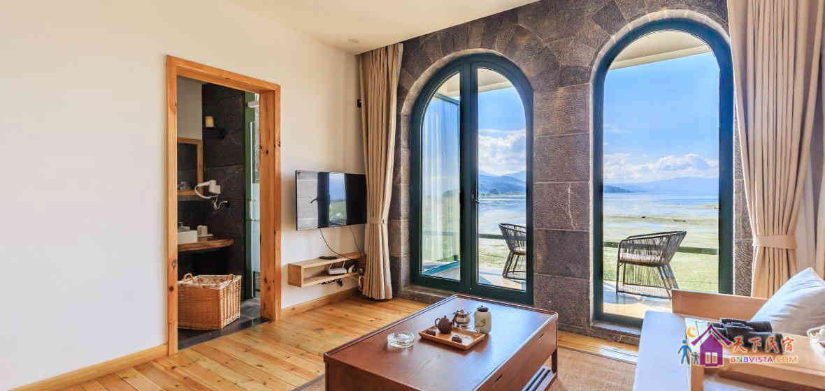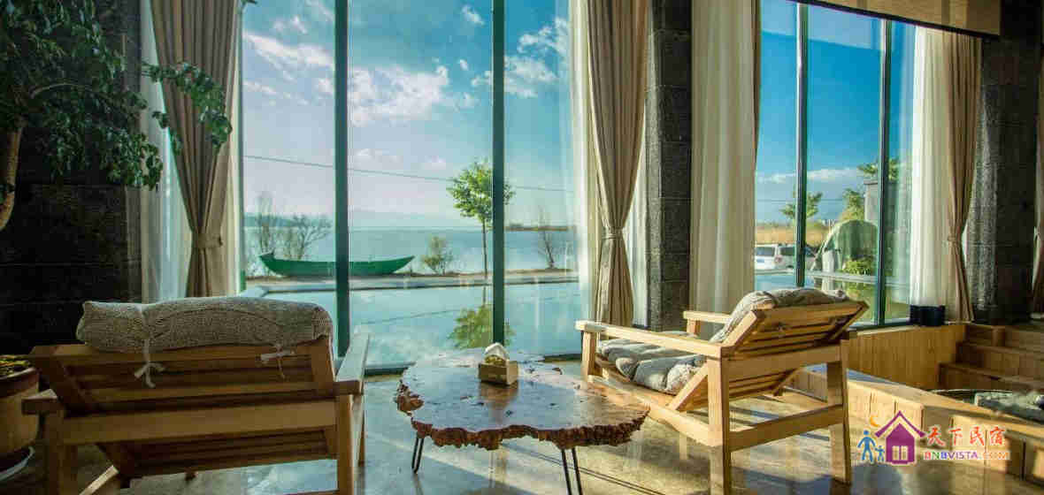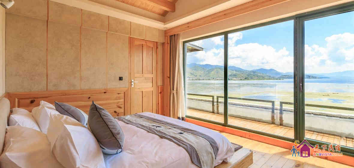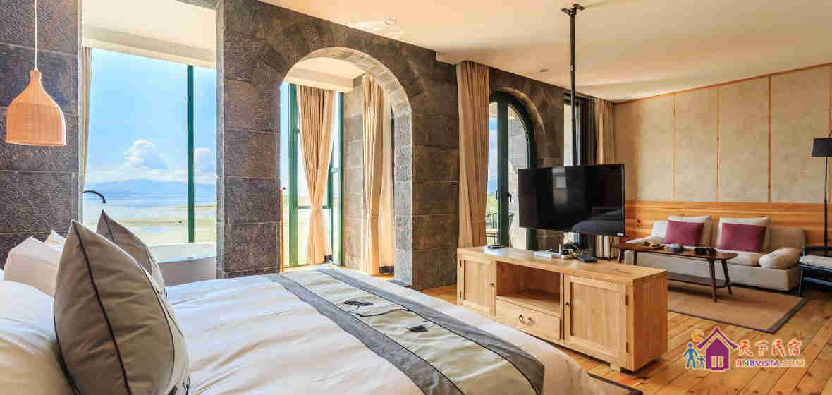 从大厅到房间内部,每一个角落都是静谧的禅意空间,每处都是自然与匠心、古朴与现代的完美融合。每一间房都拥有广阔的观景视角,每一间房都能看到波光粼粼的洱海和苍山流转的行云,躺在床上或者露天浴缸就能感受来自海面的清风,足不出户就能与对面东湖湿地公园的候鸟亲密接触。