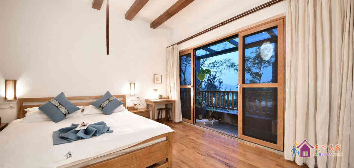 客房主要选用实木、棉、麻装修装饰,极少用漆,刷的都是天然的木蜡油,所以房间充满木头的清香,仿佛一座会呼吸的房子,天天吸纳着充足的负氧离子,等待宾客归来。