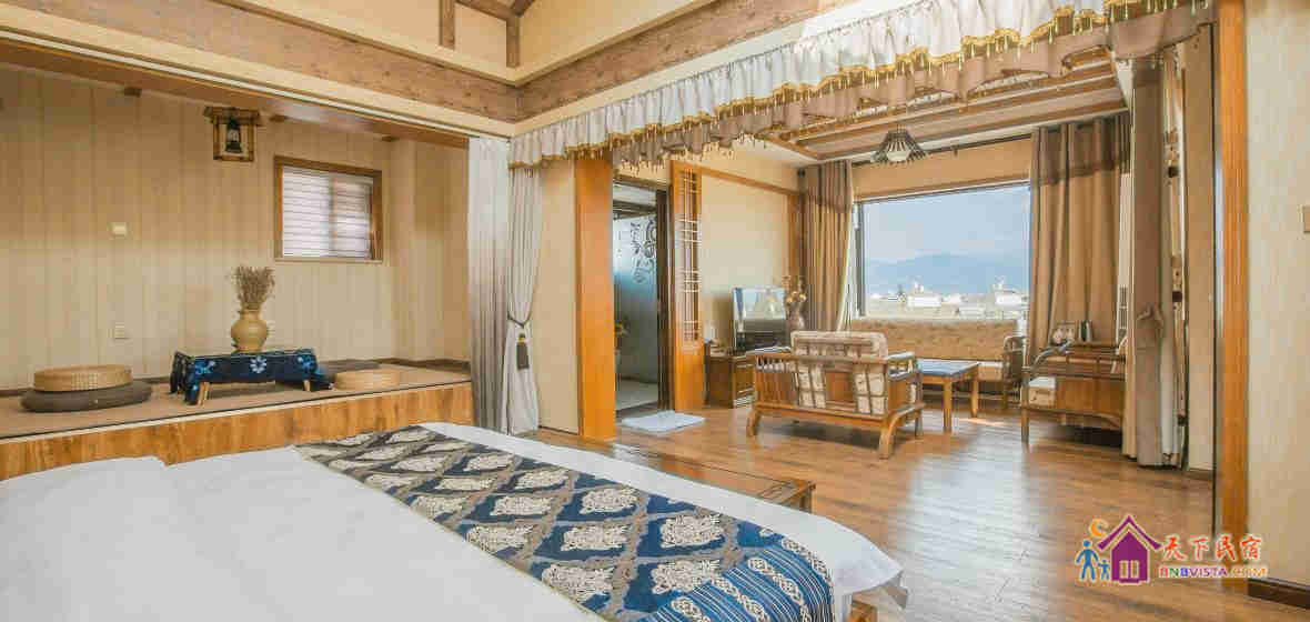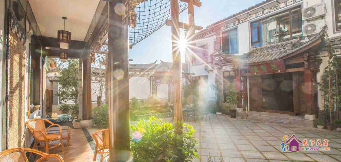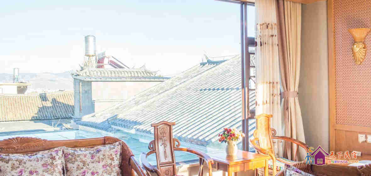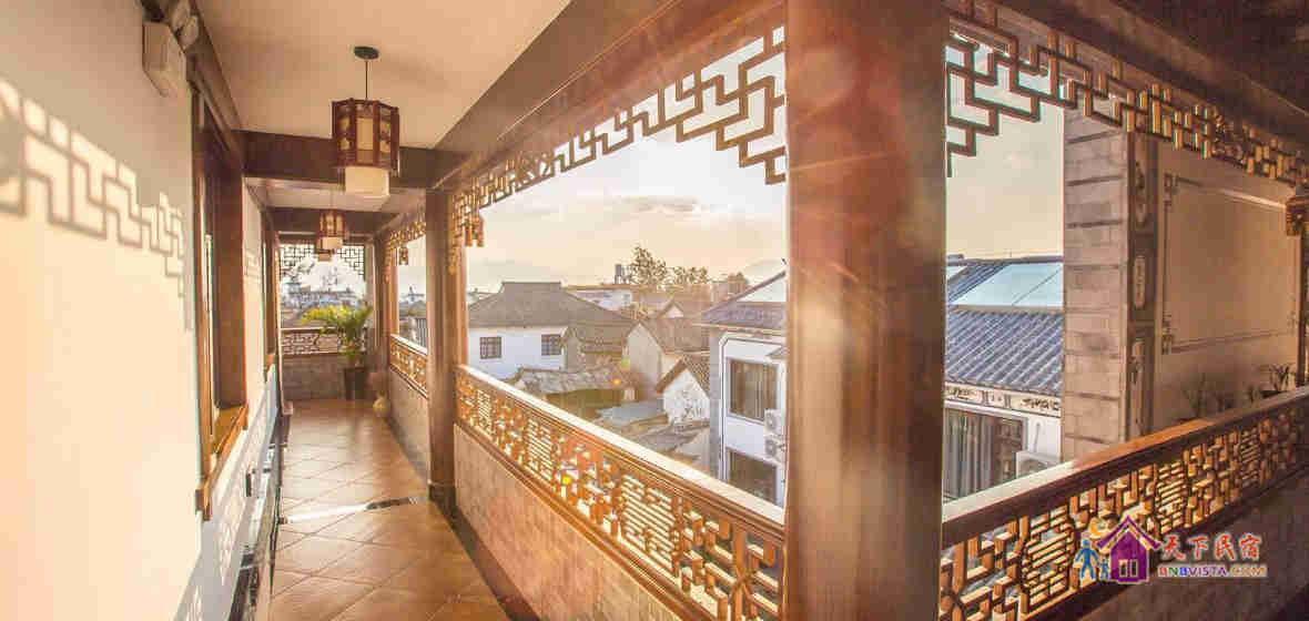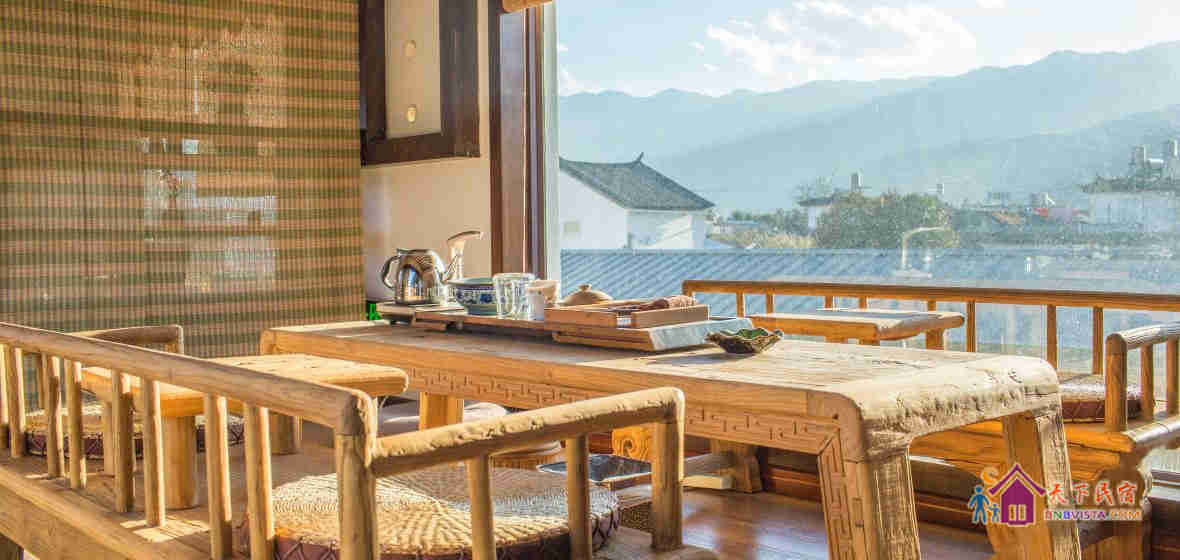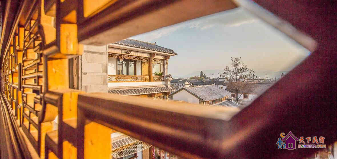 天台窗外可远眺苍山全景——白雪、青山;近观古镇全貌——鸟瞰民居、别致古奇、岁月有痕、鸟语花香,尽享阳光美景及千年古镇之灵气,让心灵有了归宿。