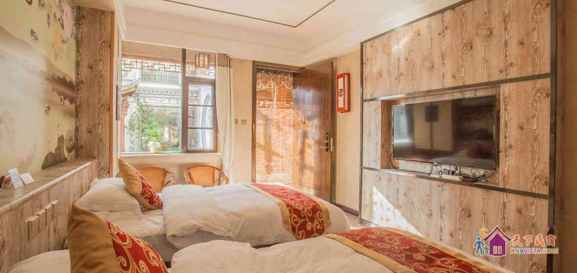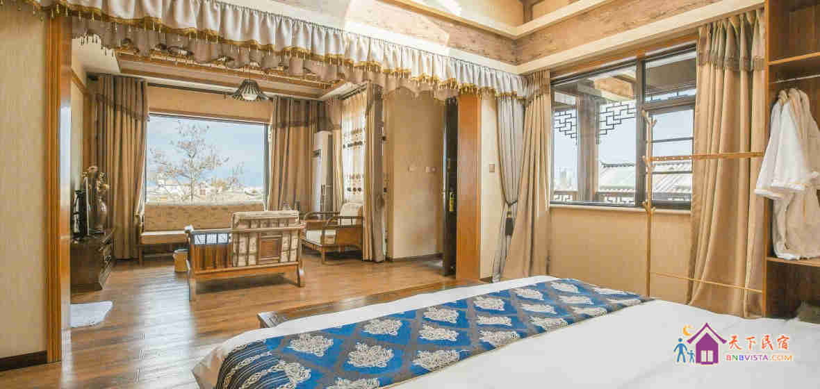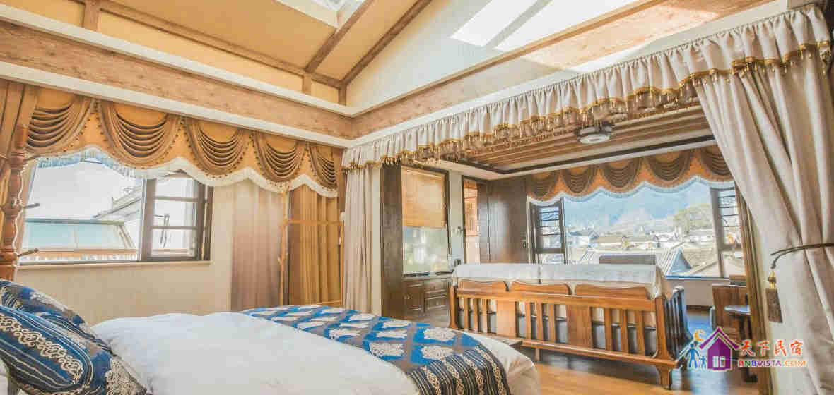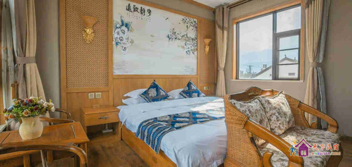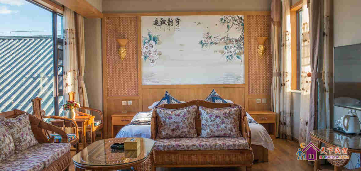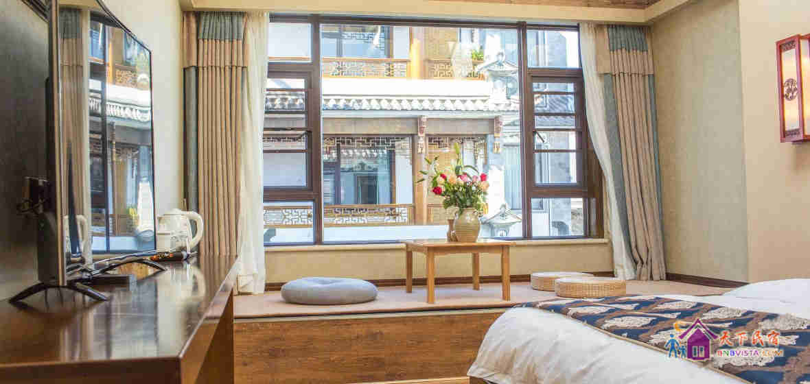天台窗外可远眺苍山全景——白雪、青山;近观古镇全貌——鸟瞰民居、别致古奇、岁月有痕、鸟语花香,尽享阳光美景及千年古镇之灵气,让心灵有了归宿。
