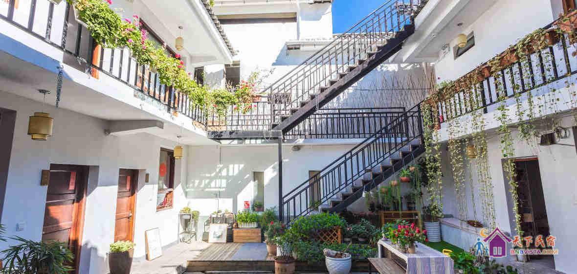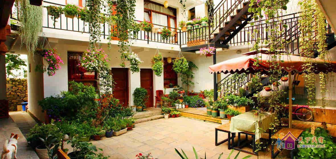 客栈是一个三面围合的小院,典型的白族民居建筑,古香古色中又透着淡淡的现代气息。这里一层接待区大厅兼容投影,亦可品茗读书。内部花园式天井宽敞舒适,阳光充足,绿意盎然。庭院房温馨雅致。二层客房设计典雅,配套齐全。楼顶花园,直面苍山。赏花,读书,晒太阳发呆;客栈追求轻松,干净,舒适的入住体验,希望为您带来家一般的温暖。 风铃等风来,叮当等你来……