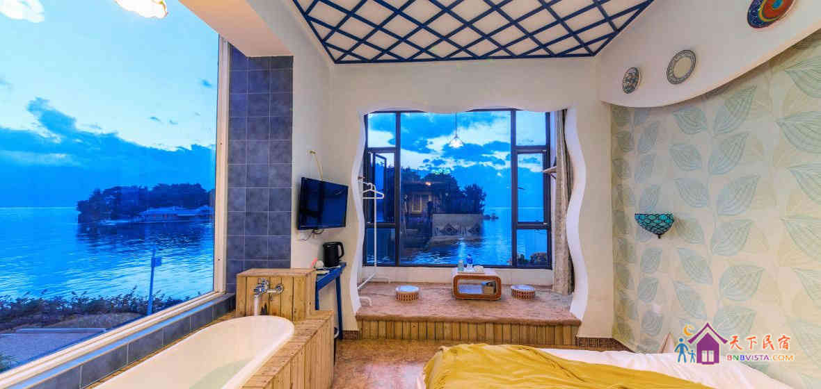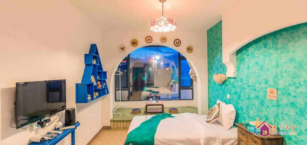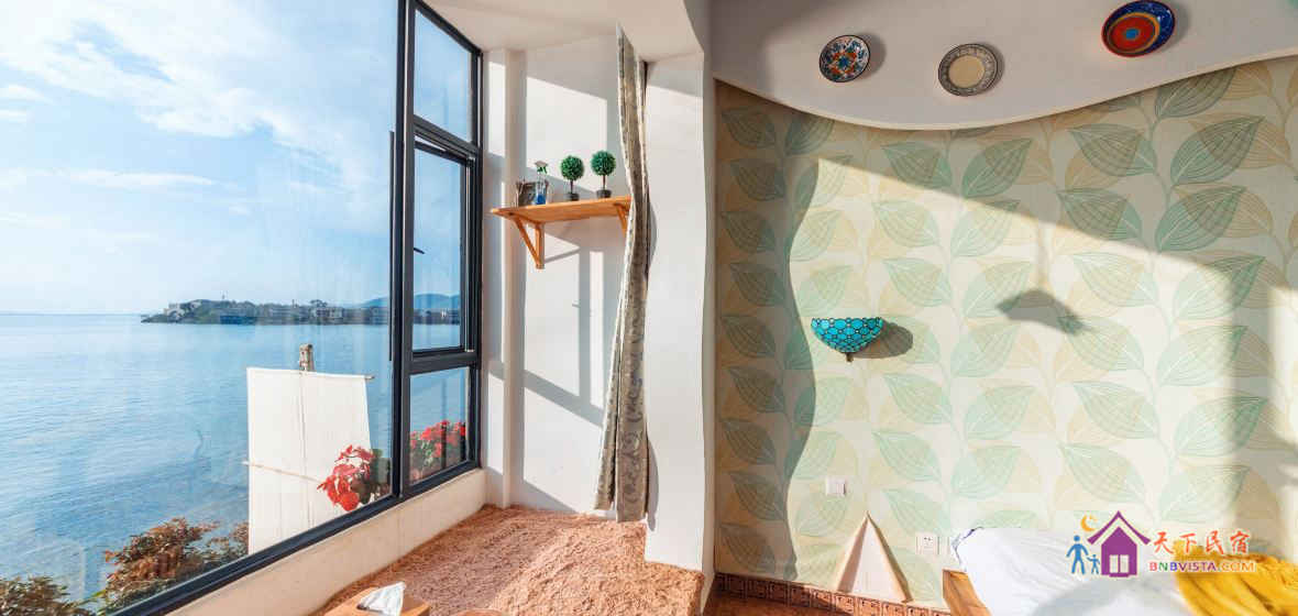 大理双廊玉几台客栈拥有各类温馨客房,客房装饰以地中海风格为主,各种家具摆设透着家庭式温馨。客栈大厅采用老船木造型精心装修而成,别具一格,整体营造了一种古朴、宁静的休息氛围。
