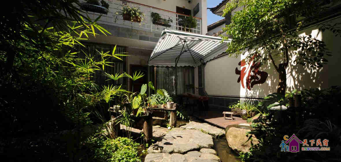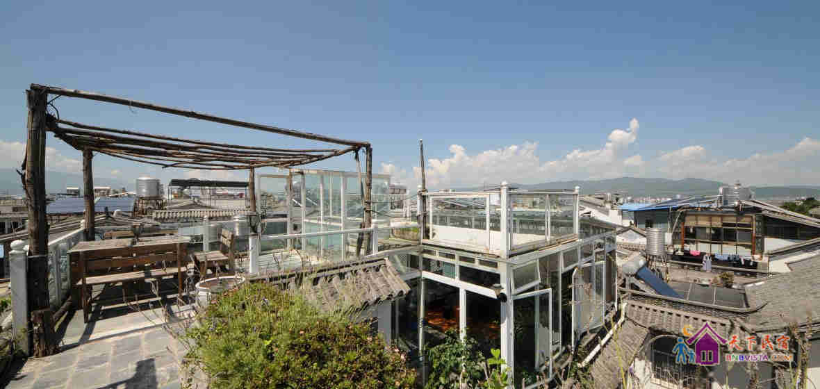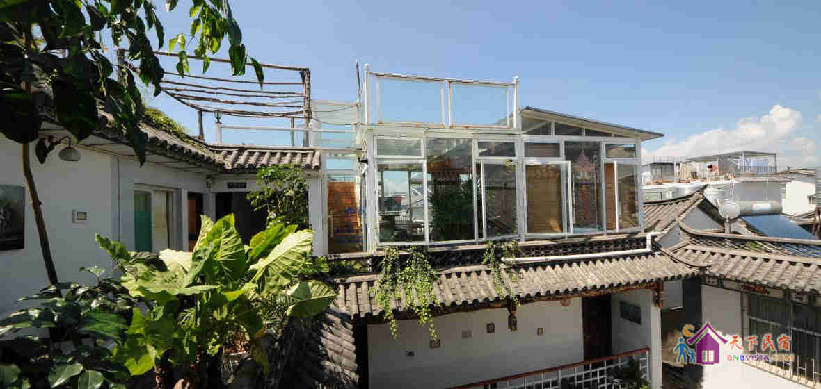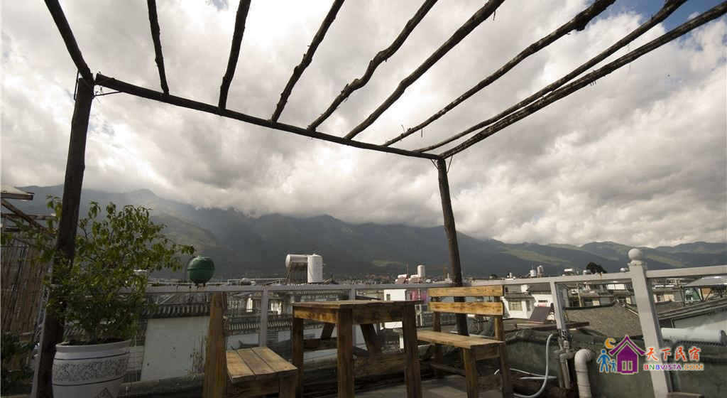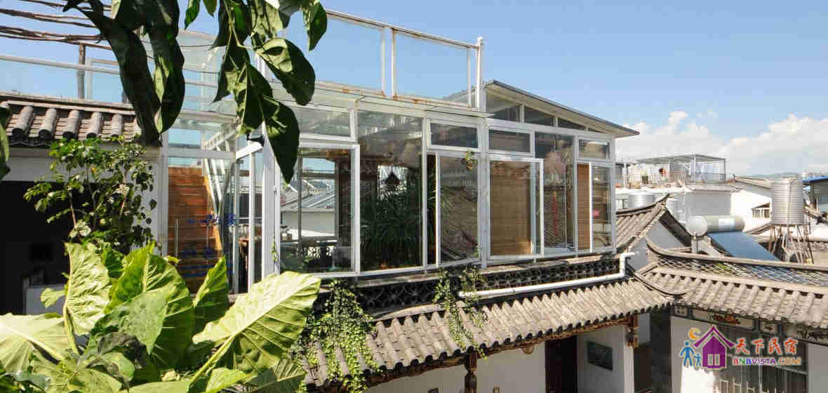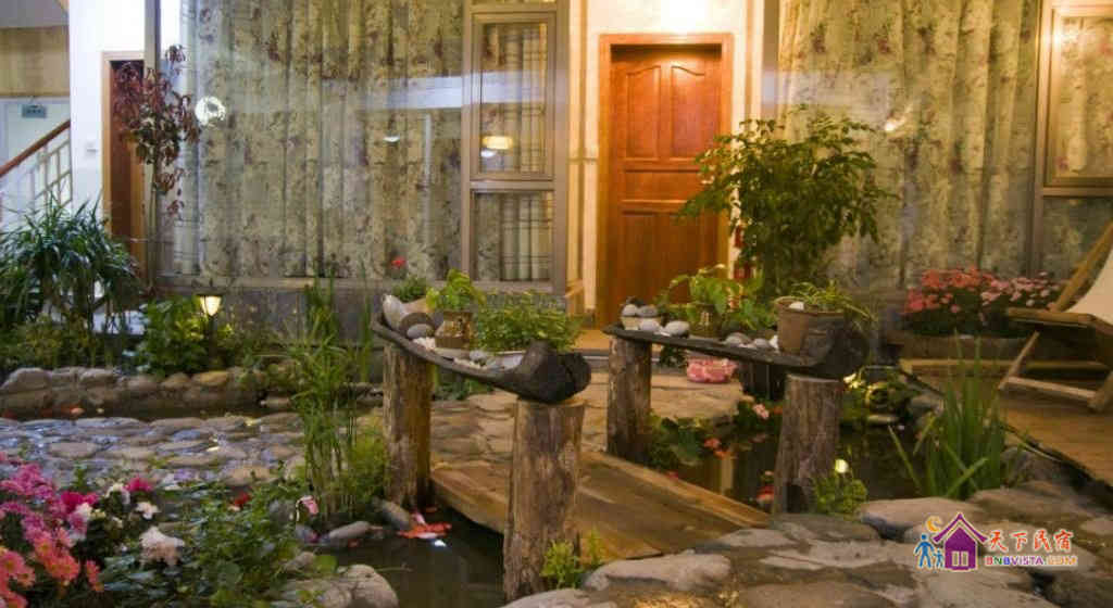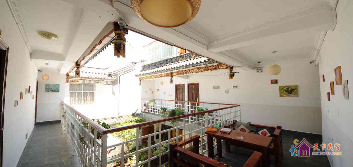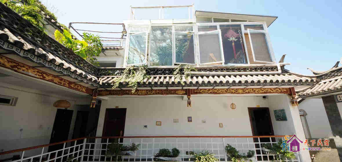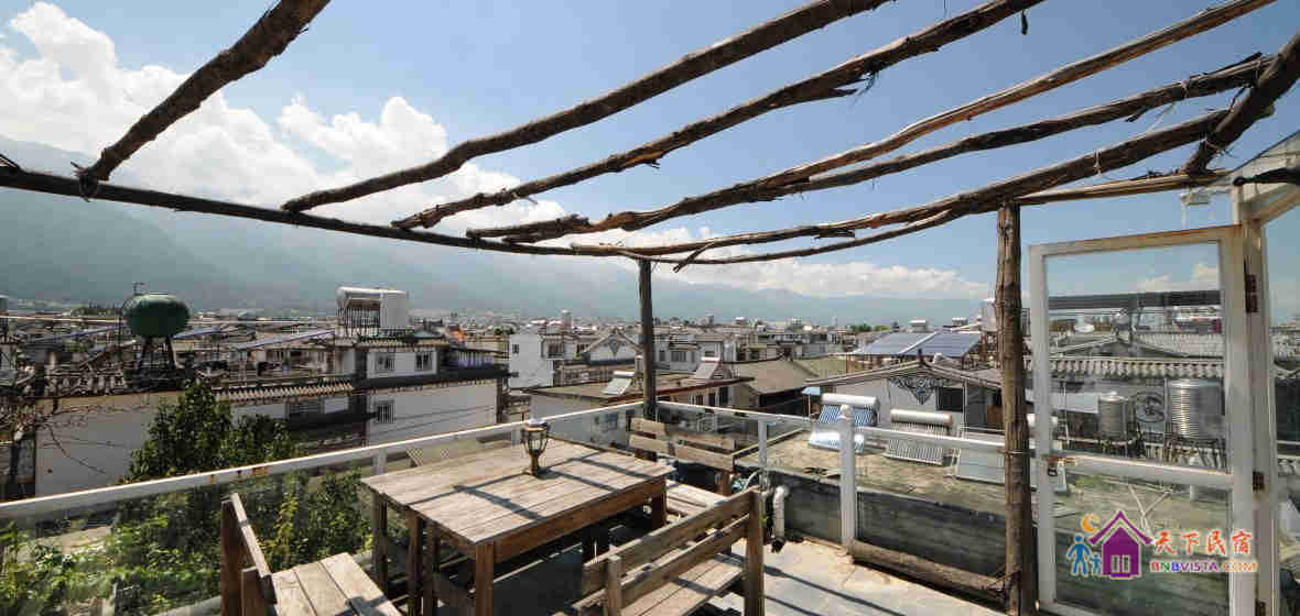 客栈是传统的白族民居四合院布局,院子里小桥流水,郁郁葱葱。一楼客厅可以泡茶聊天,三楼阳光房休闲读书、沐浴大理的风花雪月,楼顶观景台,可看全景苍山,揽月摘星。