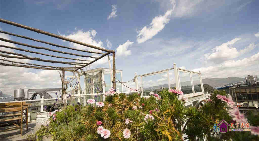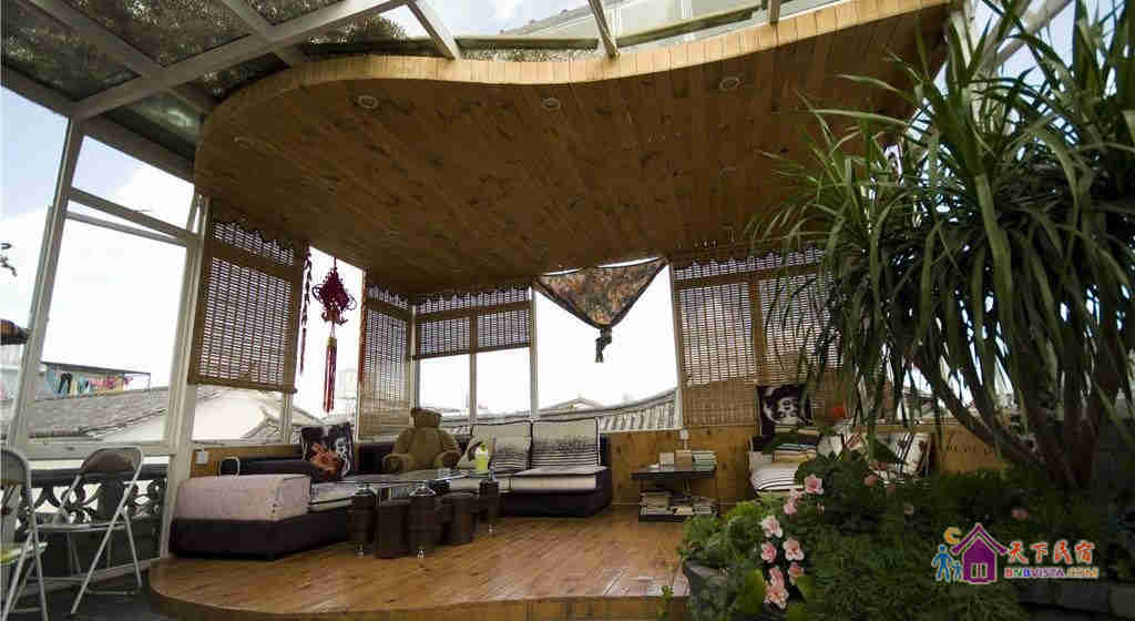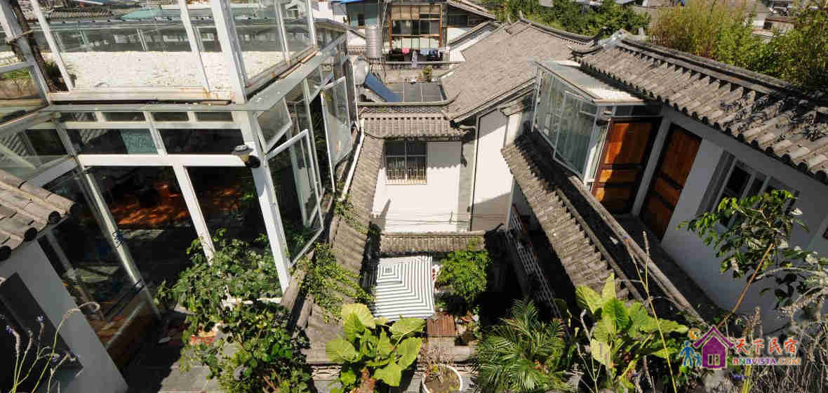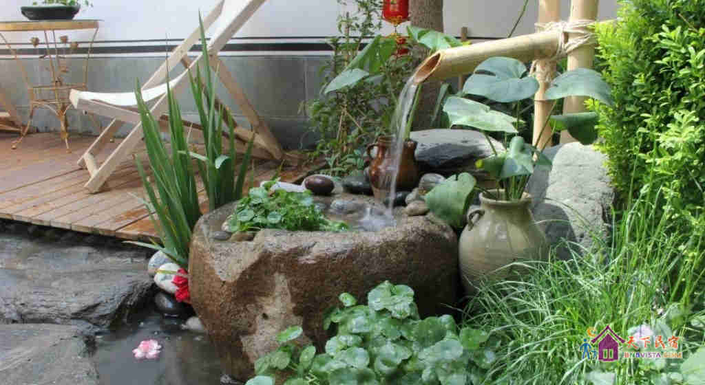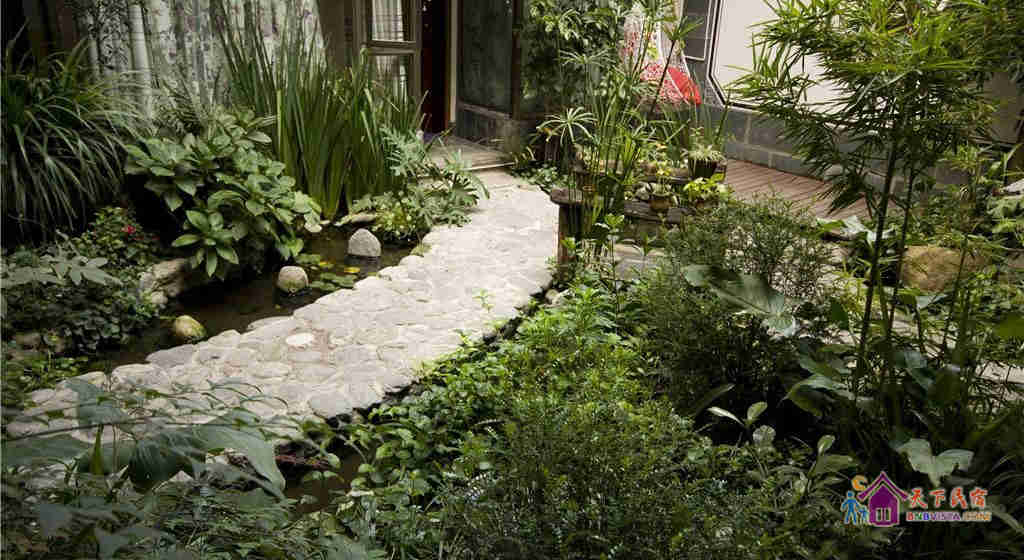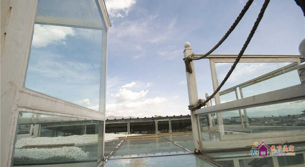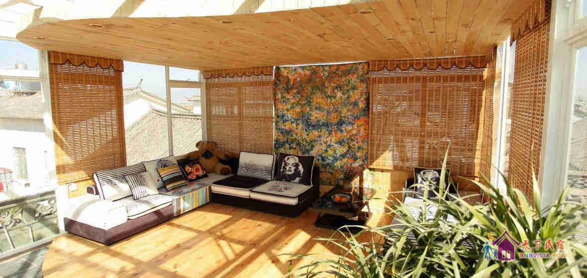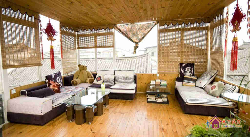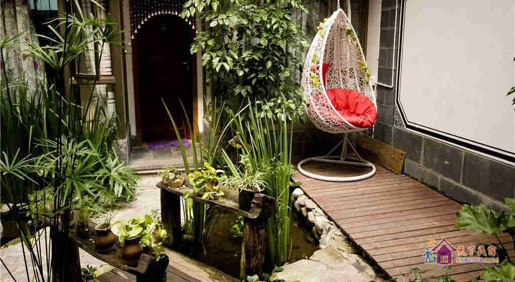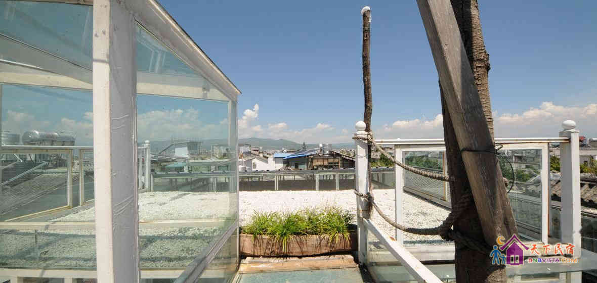 客栈是传统的白族民居四合院布局,院子里小桥流水,郁郁葱葱。一楼客厅可以泡茶聊天,三楼阳光房休闲读书、沐浴大理的风花雪月,楼顶观景台,可看全景苍山,揽月摘星。