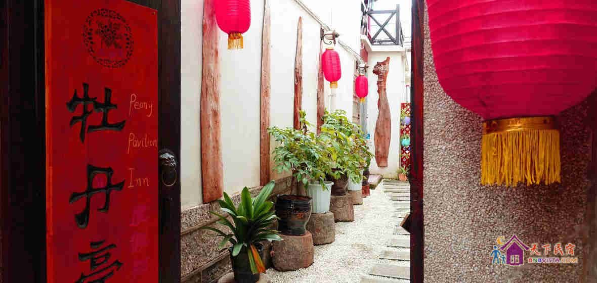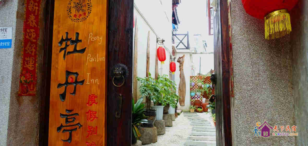 关于客栈:牡丹亭源于明代剧作家汤显祖的代表作,描写了一段爱情故事,也体现了人们对自由爱情生活的追求。e栈合一(大理古城1店)既寓意爱情生活,更是因为院内的多盆牡丹花和仿古的亭台。