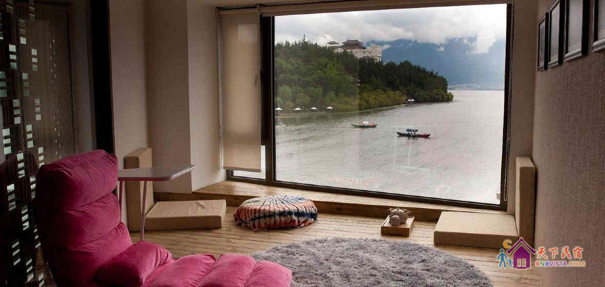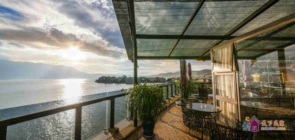 蟹屿螺洲的意思是像螃蟹和螺蛳一般大小的小岛,而这个客栈刚好就像一颗明珠一样遗落在苍洱之间,三面环岛、得天独厚的优势使得客栈每一个房间都可以看到苍山洱海,日出日落。