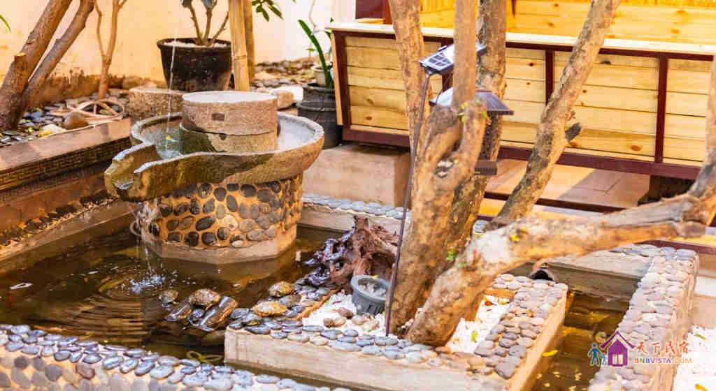 除此以外小池塘里养满了可爱的小乌龟、小金鱼,每天看着他们悠闲自在也是怡然自得。院子里还可以容纳20人的烧烤火锅台,是聚会的好场所。