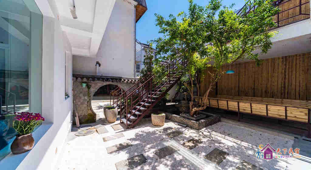 客栈属于新中式风格,精心布置的庭院更是别有洞天,院内有两棵金桂,一到开花的季节就是满院的桂花香,还有一棵二十多年的石榴树,每年都结满果实,等您来摘,另外还有一棵桑葚,结果的时候可自己亲自动手做桑葚酸奶。