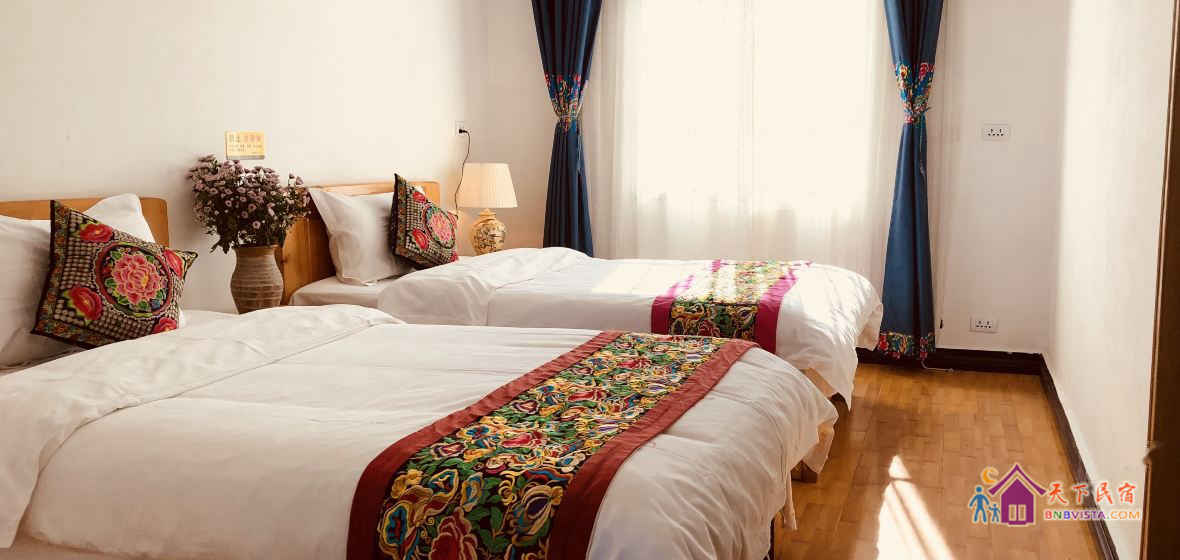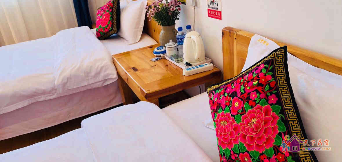 大理桃源海月客栈特设亲子三人房,房间宽敞温馨,采光通风良好,房内24小时热水独立淋浴间、电视机的等设施都有配备。