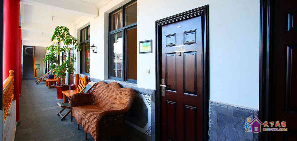 大理九米八客栈是一家以公路旅行为主题的客栈,主体建筑为特色白族民居,家具为全实木,简洁、大方,在房内东可观洱海,西可望苍山。