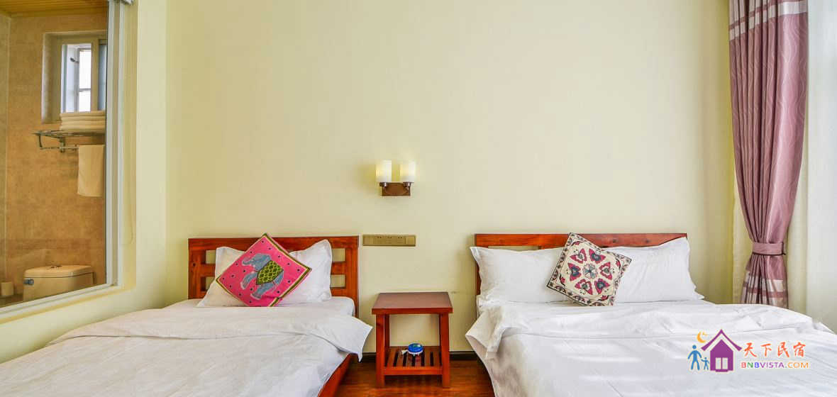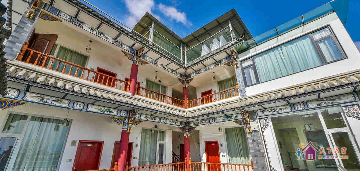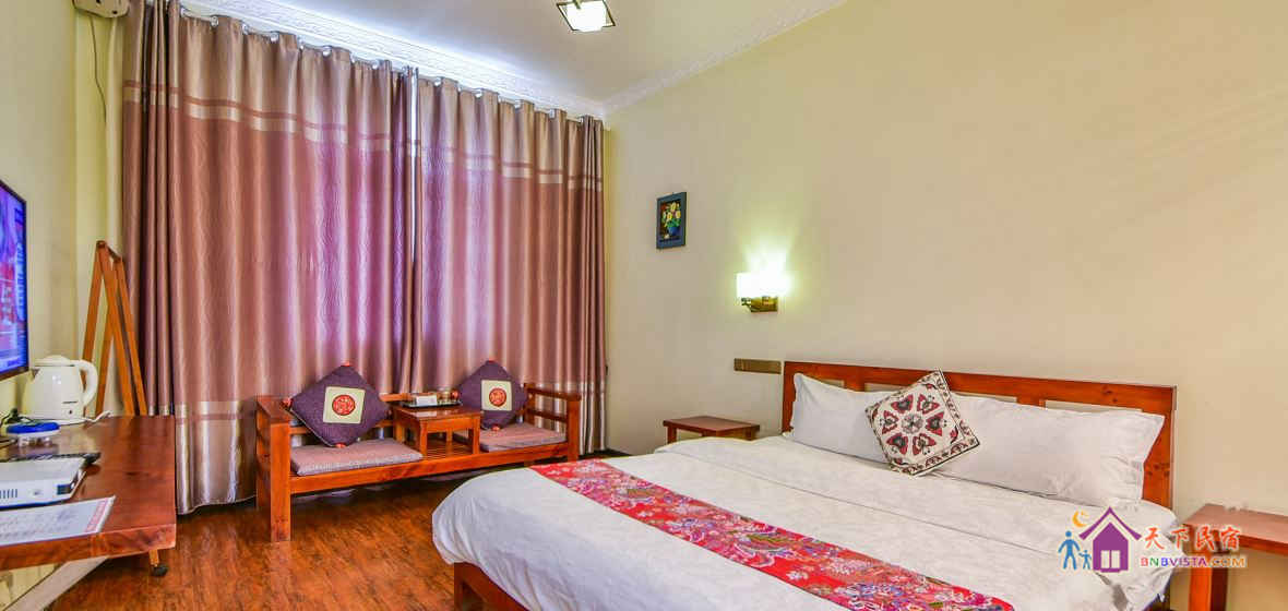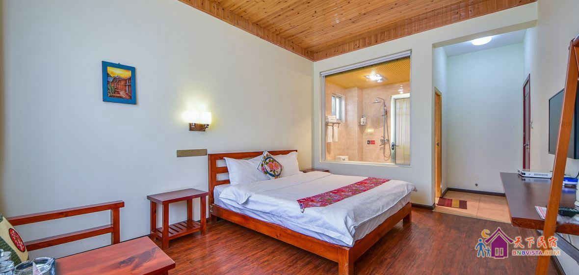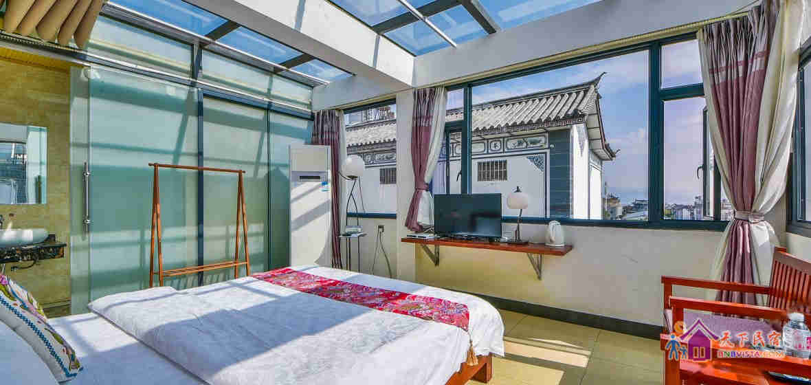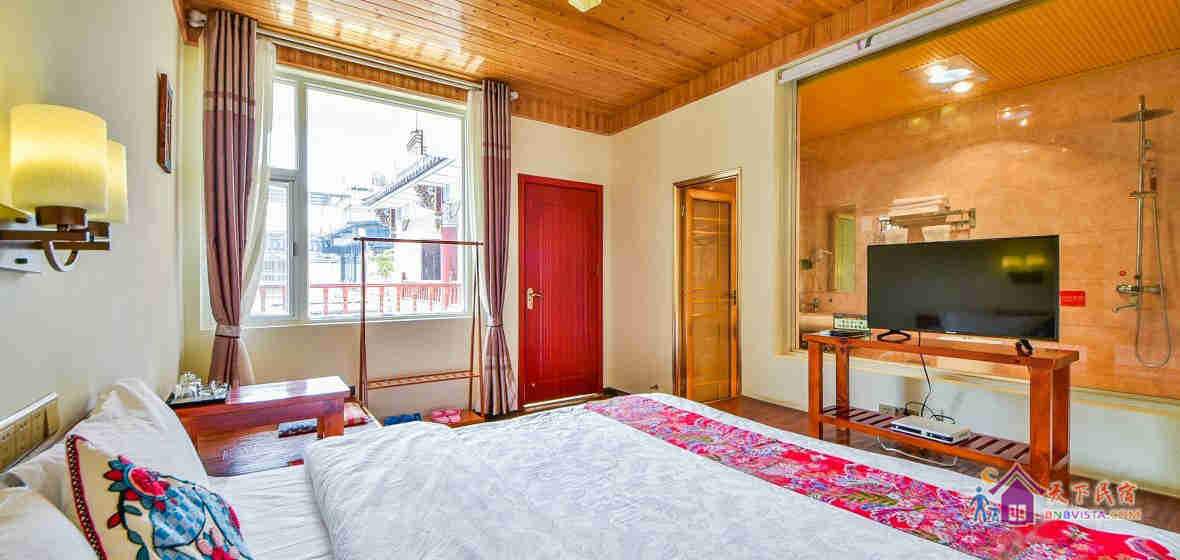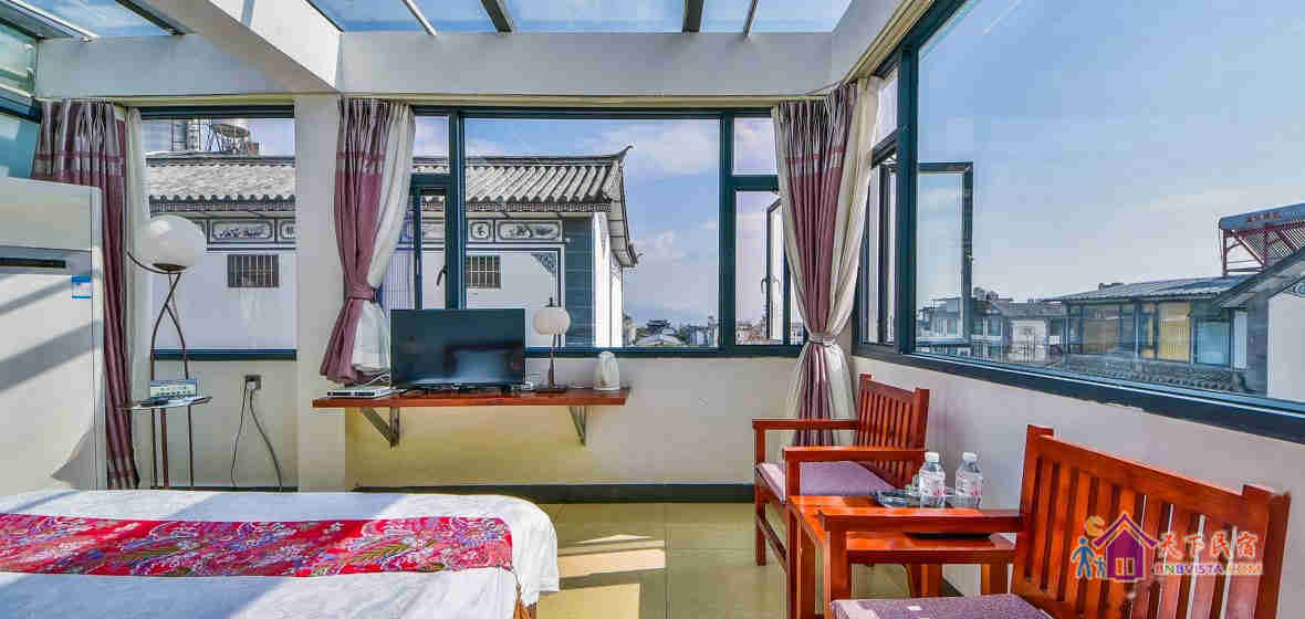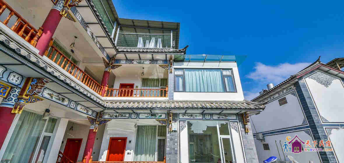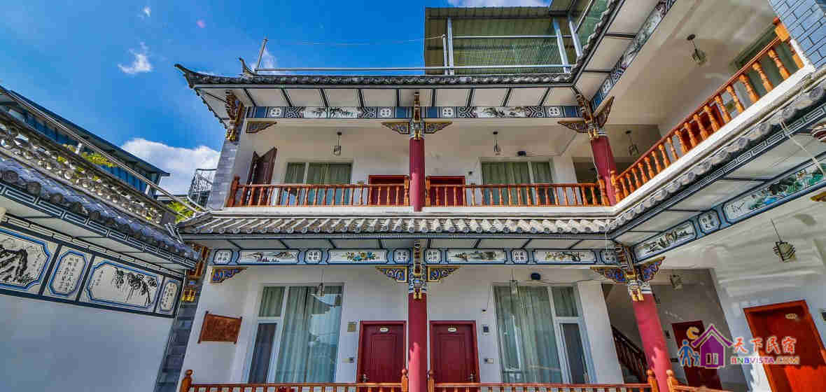 客栈是按白族民居的建筑风格建造的,斜屋顶的青瓦和白色的主墙为主体,手绘的彩画和木雕的装饰相映衬,是典型的三房一照壁的白族民居建筑。客栈精心打造了十余间客房,6款经典房型满足客户多元化需求,以木质家具和现代明朗简洁的设计和布局,彰显尊贵品质及白族文化的魅力。