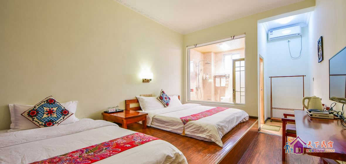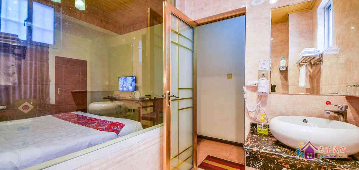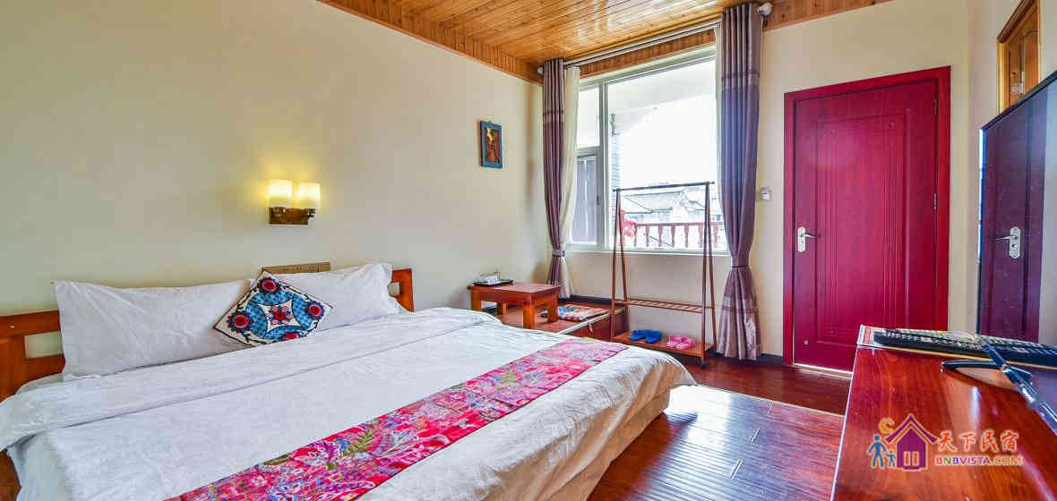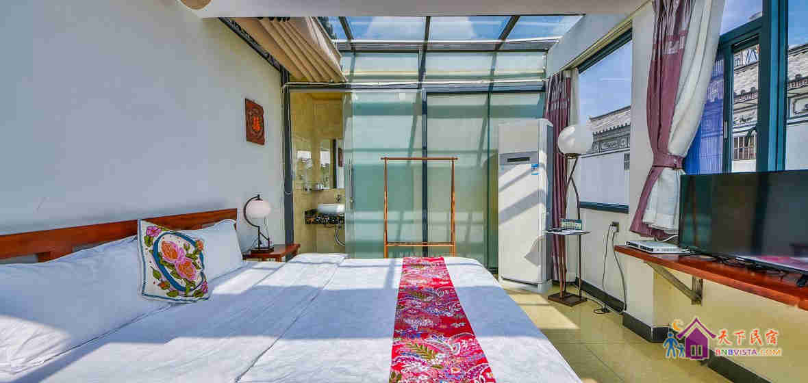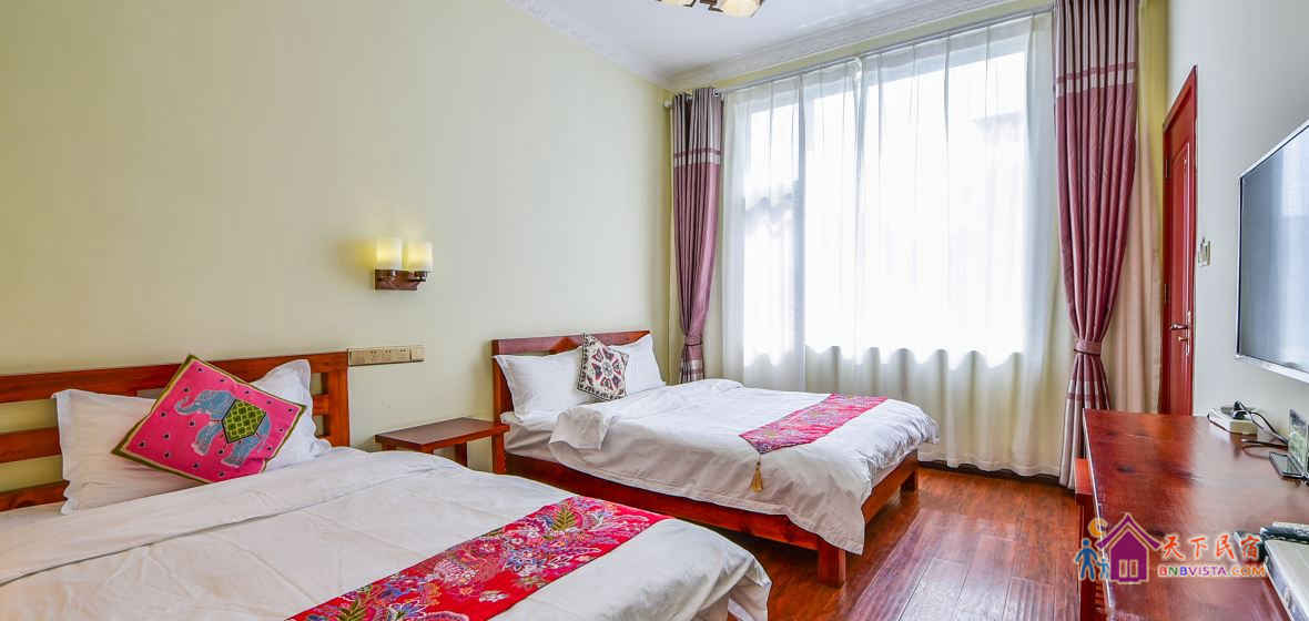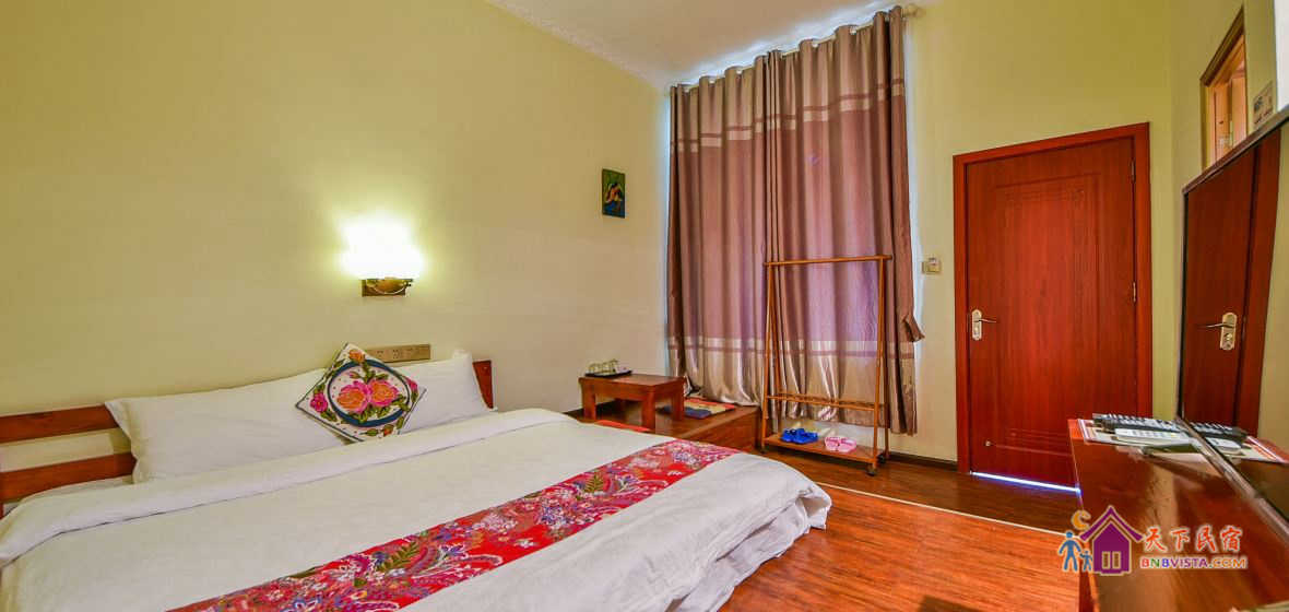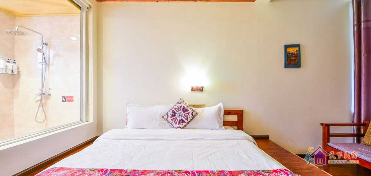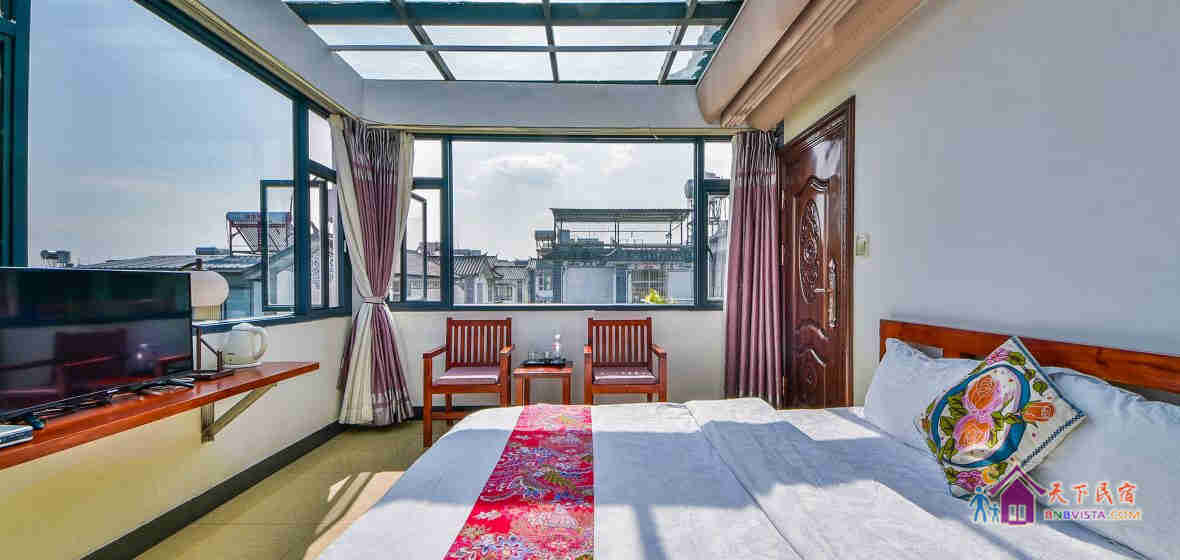 客栈是按白族民居的建筑风格建造的,斜屋顶的青瓦和白色的主墙为主体,手绘的彩画和木雕的装饰相映衬,是典型的三房一照壁的白族民居建筑。客栈精心打造了十余间客房,6款经典房型满足客户多元化需求,以木质家具和现代明朗简洁的设计和布局,彰显尊贵品质及白族文化的魅力。