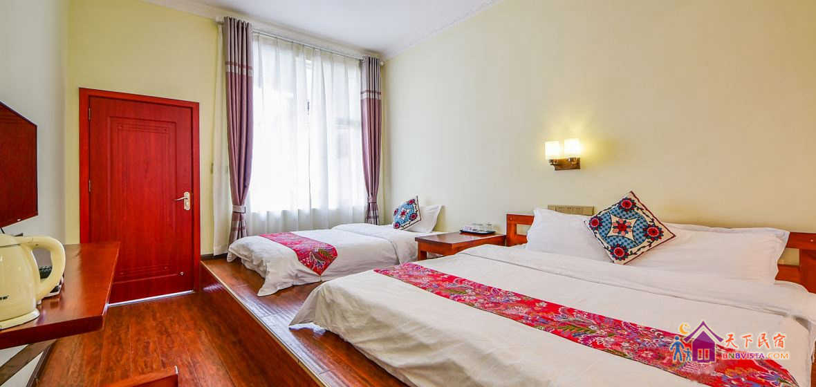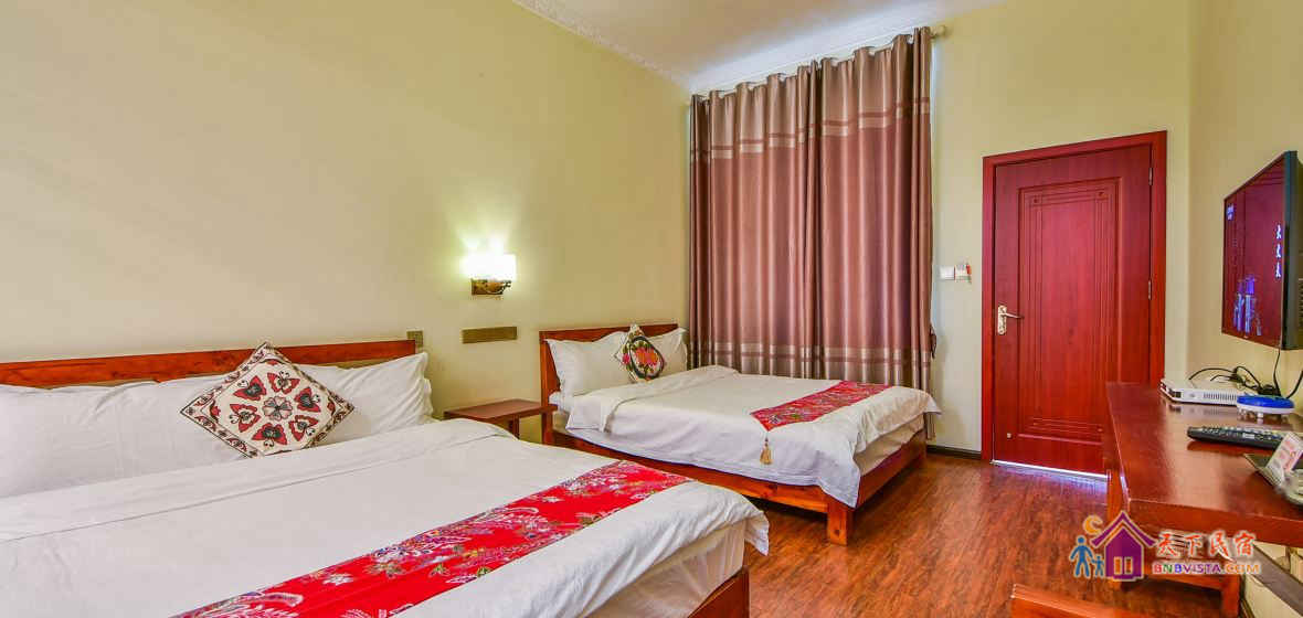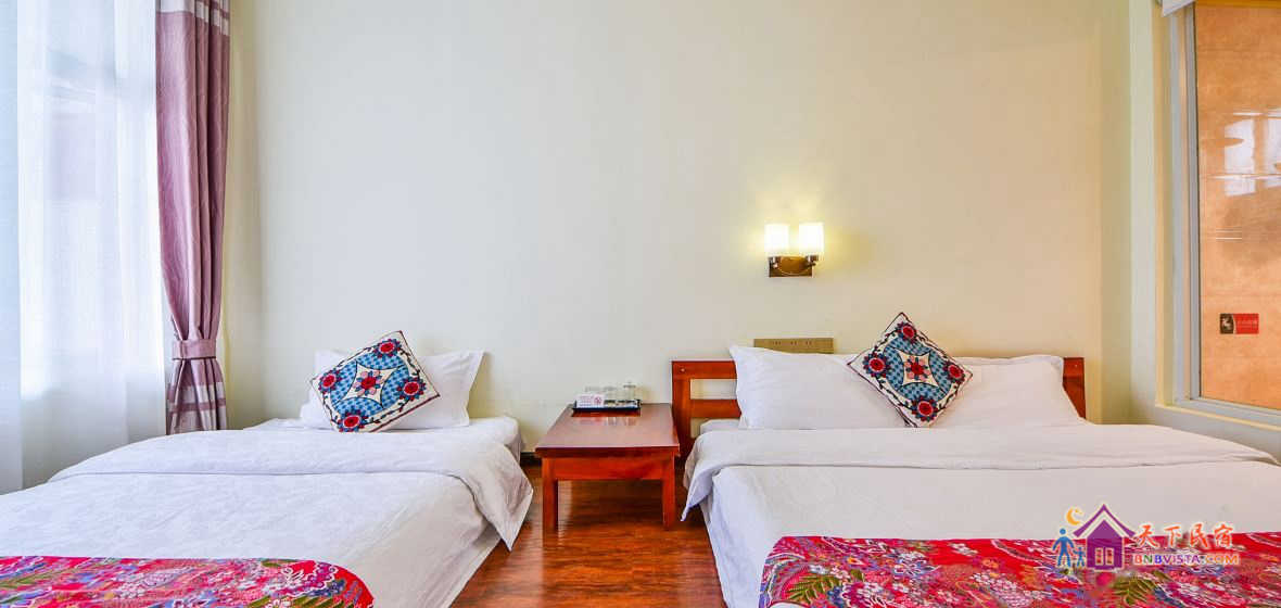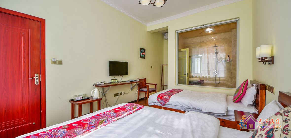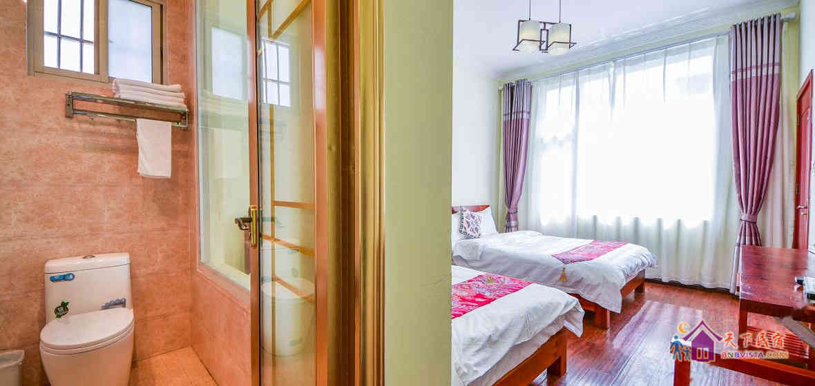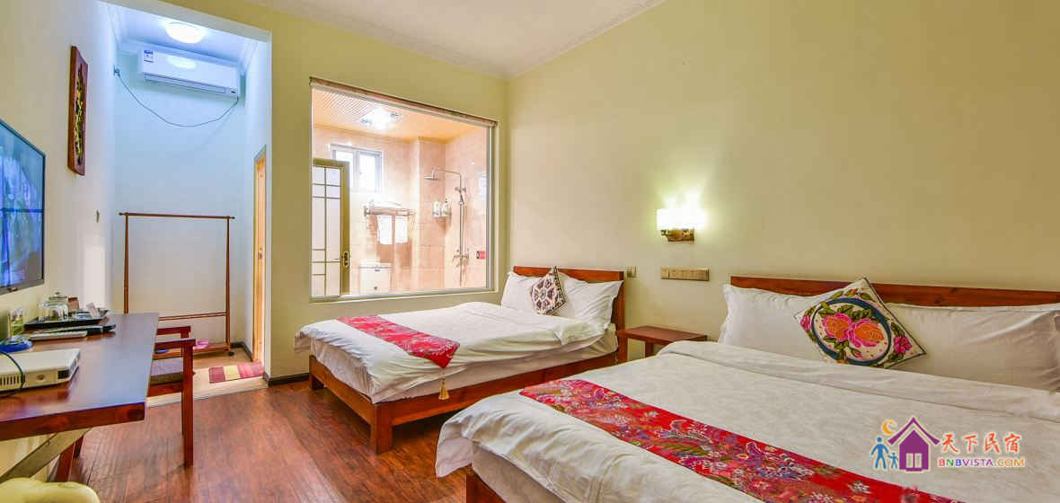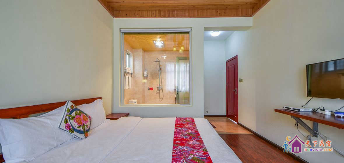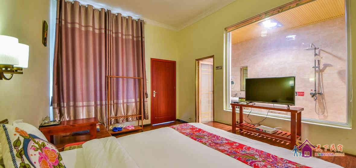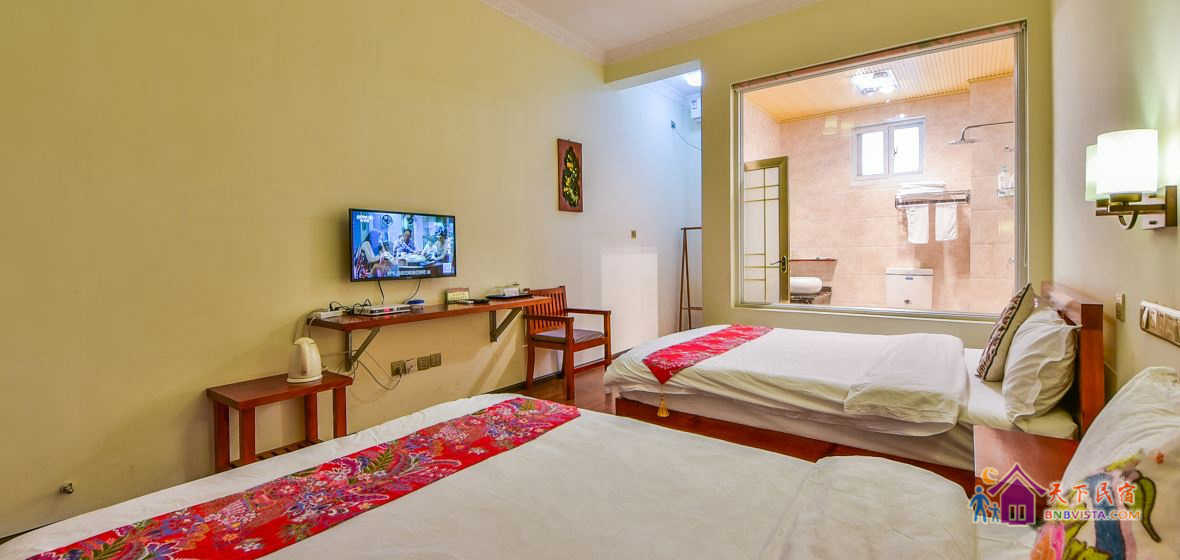 客栈是按白族民居的建筑风格建造的,斜屋顶的青瓦和白色的主墙为主体,手绘的彩画和木雕的装饰相映衬,是典型的三房一照壁的白族民居建筑。客栈精心打造了十余间客房,6款经典房型满足客户多元化需求,以木质家具和现代明朗简洁的设计和布局,彰显尊贵品质及白族文化的魅力。