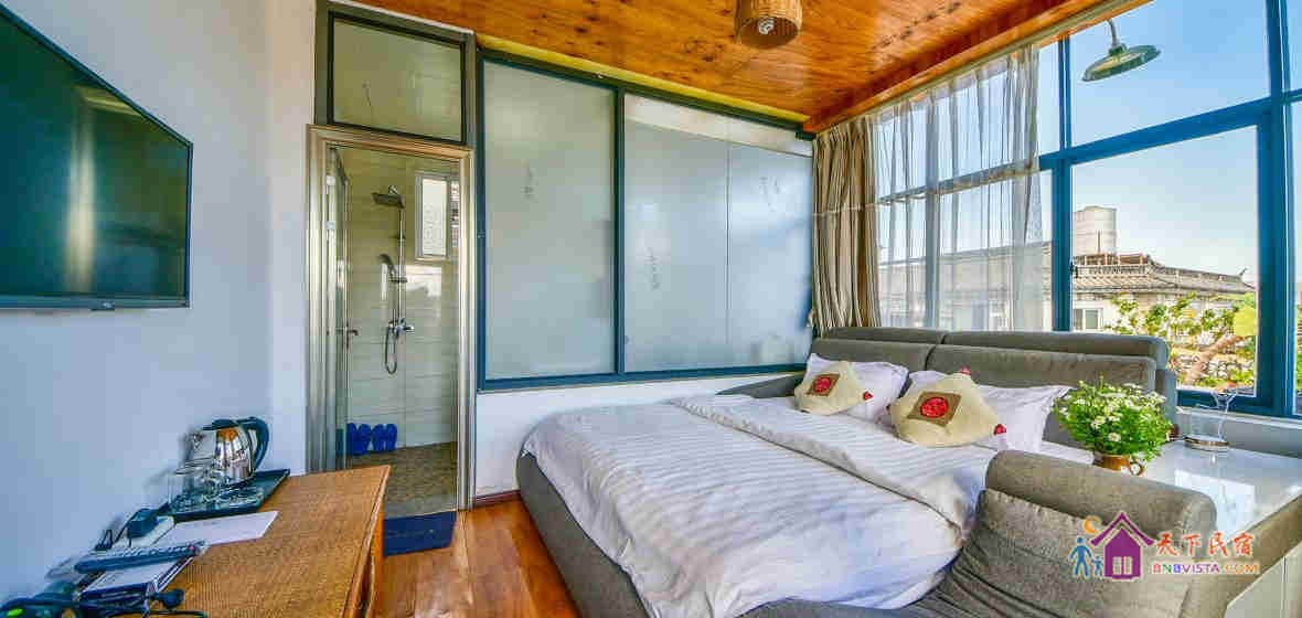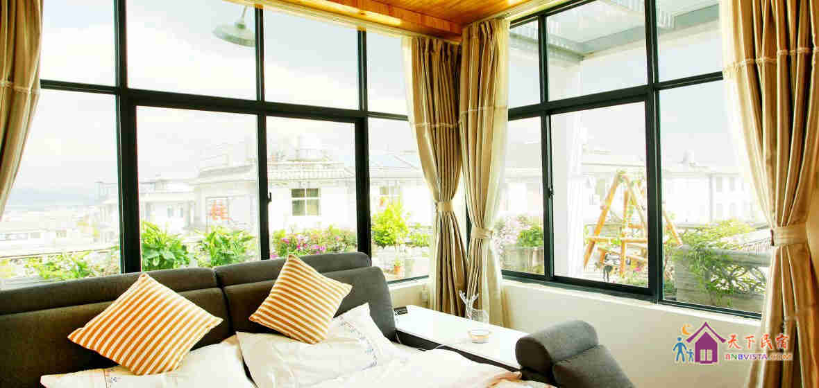 客栈为白族院落,天台休息区视野开阔,苍山洱海,古城全景一览无余。这里客房宽敞明亮、整洁舒适,配有24小时热水、无线wifi、洗漱用品等。