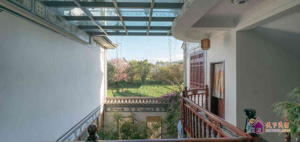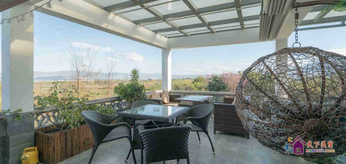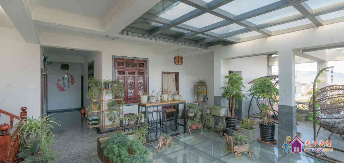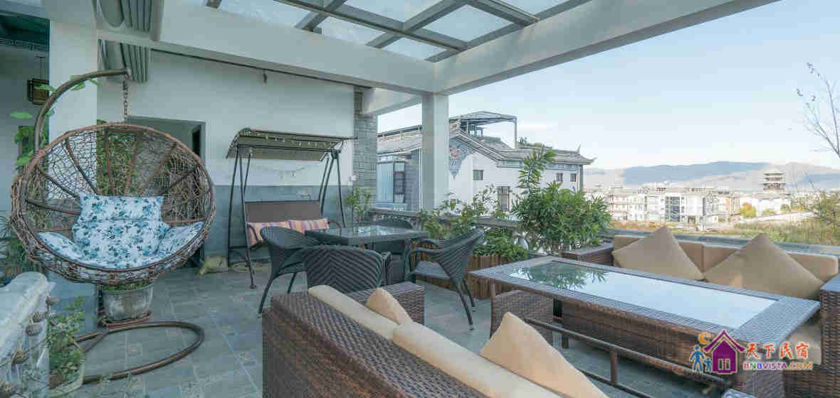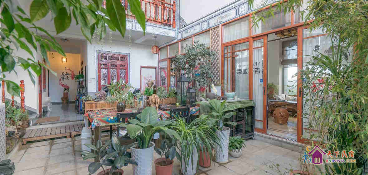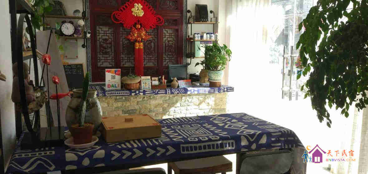 客栈位于大理古城南门,文献路中段南门新村。是一家毗邻海西田野旁的温馨安静的家庭客栈,房间风格田园景观为主,在原房间结构的基础上稍加装饰,更接近家的感觉,让您在远离城市的喧嚣、工作、生活的压力,体验另一个家给您带来的温馨舒适快乐安静。露台上,眼前是苍山,远方是洱海,手边一本闲书,随手翻翻。微风如时间般滑过皮肤。此情此景,一个人也是狂欢,两个人也是恬静,一群人便是永恒的青春。雨过天晴,彩虹照亮整片天空:夕阳西下,火红晚霞。墙上的彩绘,诉说着古城的沉淀:角落的金桂花,点缀了心中的繁华。还记得当年骑着脚踏车无忧无虑的模样吗?十分钟后,便能到洱海,对着海面轻喃“你好吗?我很好。”