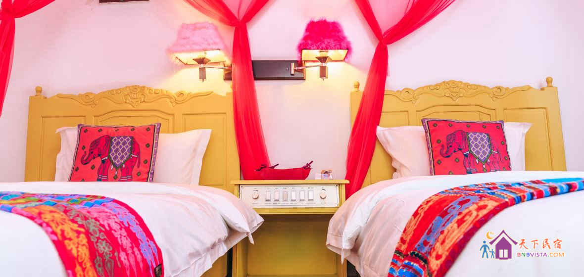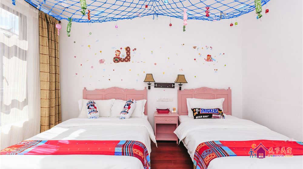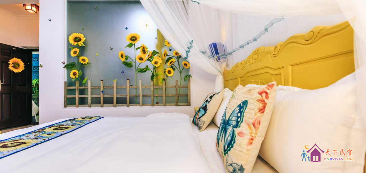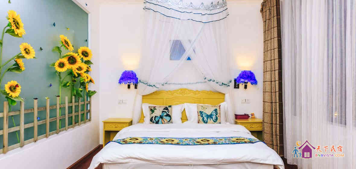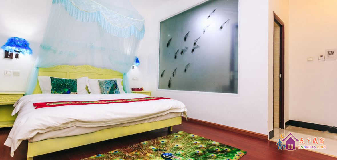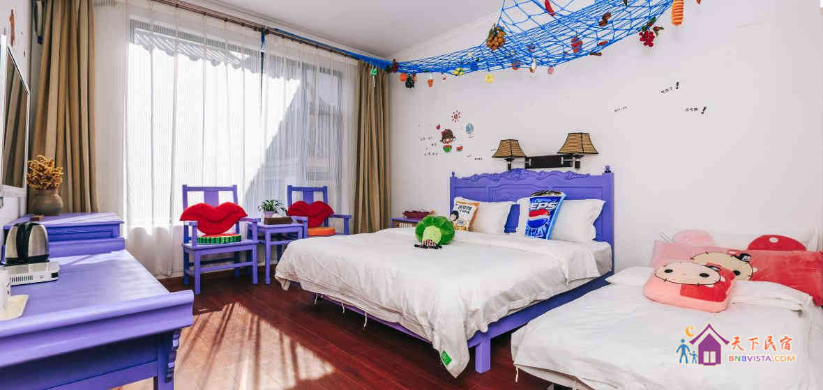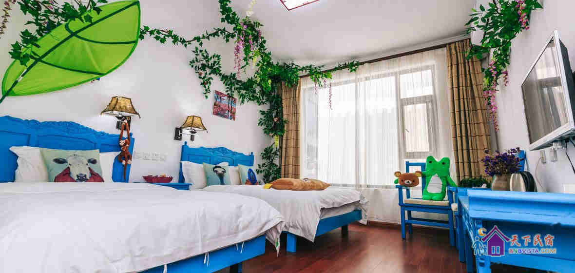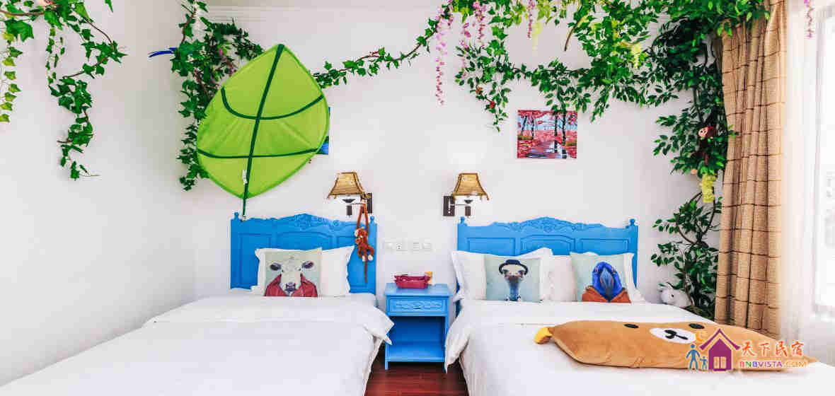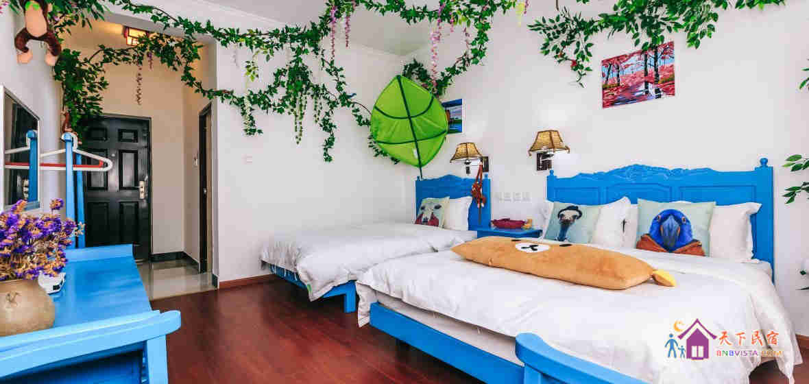 - 所有房型: 糖果乐园亲子家庭房,鸟羽花香大床房,雀之灵大床房,吃货天堂亲子家庭房,向日葵大床房,逗比标准间,蓝染诱惑标准间,森林童话亲子家庭房,航海世界亲子家庭房,闺蜜标准间,普罗旺斯大床房
