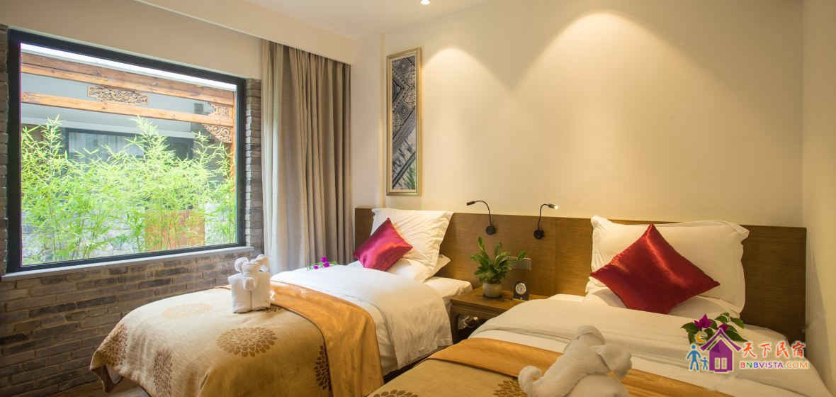 客栈环境优雅,鸟语花香,竹林听风,锦鲤嬉戏,拥有四十余间客房。房内布置典雅精致,配有全进口卫浴设备,舒适的环境让你安心入住。