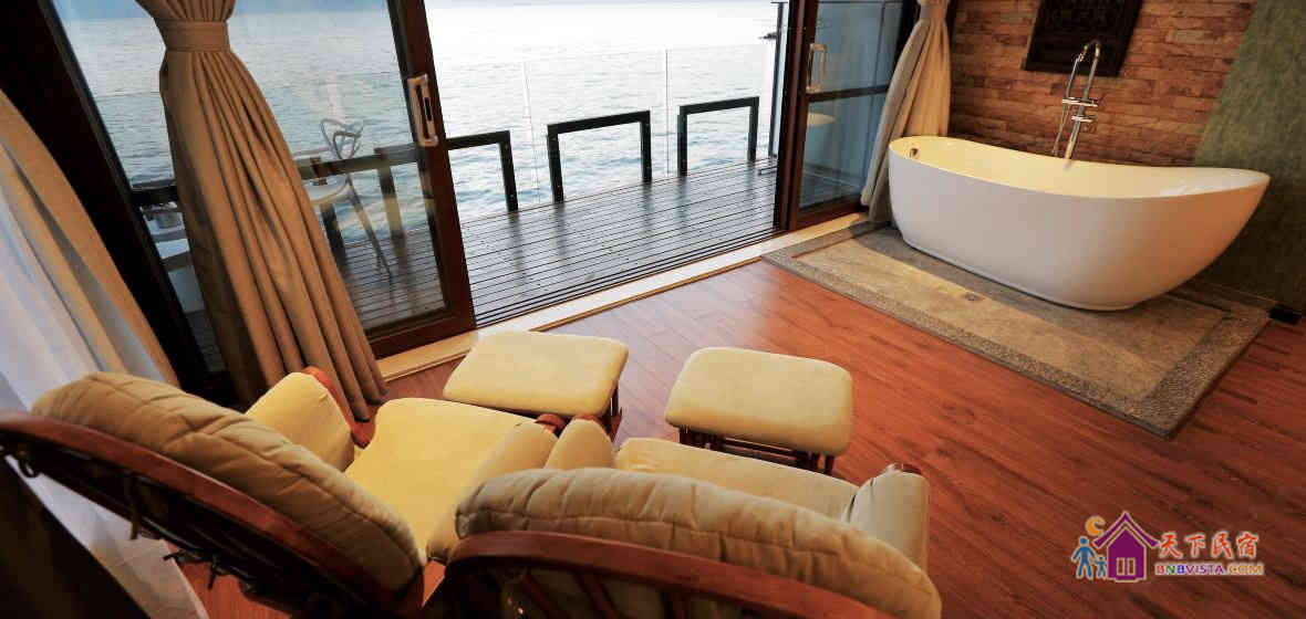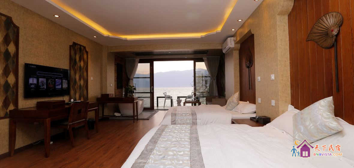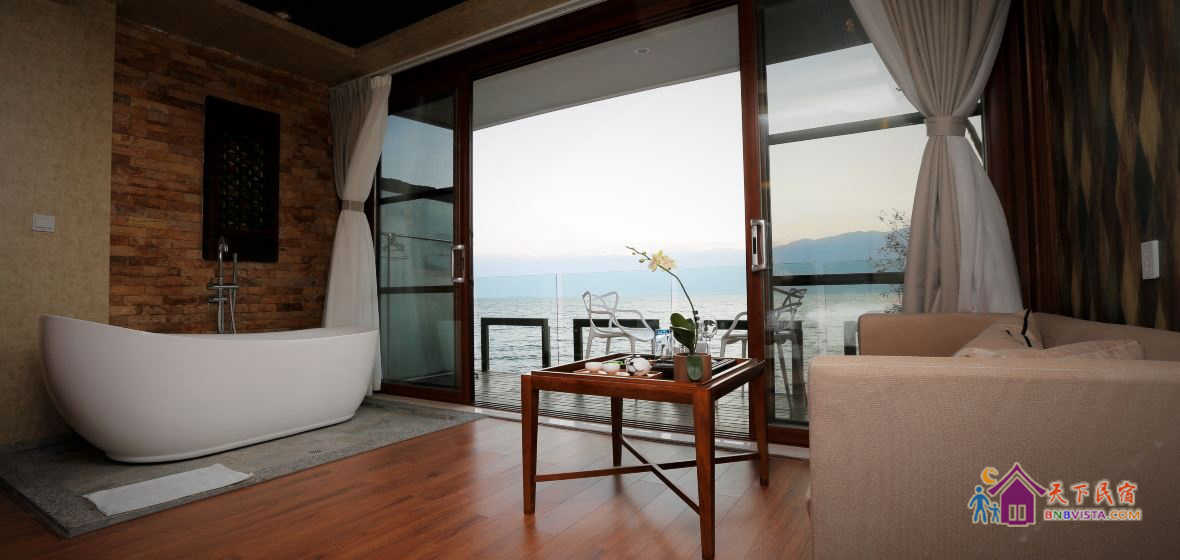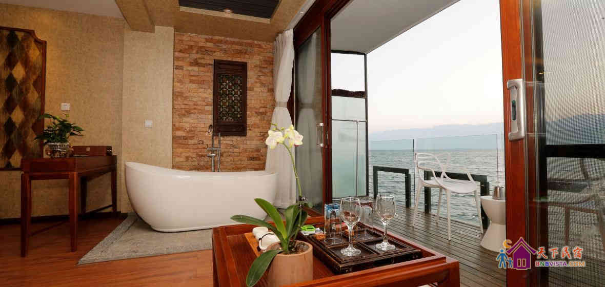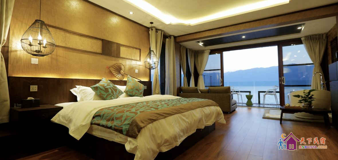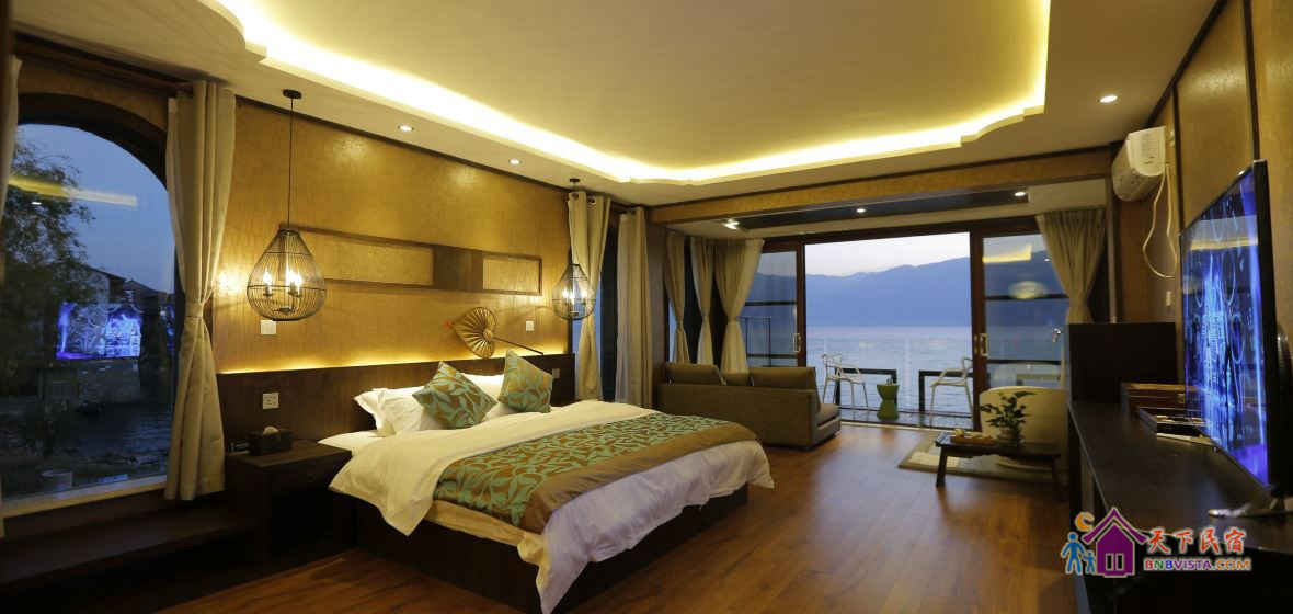 大理双廊菡萏驿海景客栈整体装饰现代雅致、色调柔和,客房布置时尚精致,将传统中国元素与现代居住理念相融合,别有韵味;房内配置空调、液晶电视、小冰箱、24小时热水、浴缸、独立卫浴等设施,满足宾客品质生活需求。