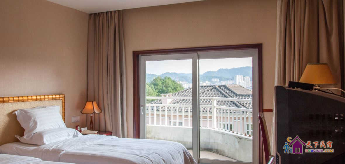 酒店拥有多幢独立别墅,百余间豪华舒适、完全融入自然风光的绿色客房,房内提供完备的设备设施,部分别墅提供自动麻将机、私家花园、大阳台等。