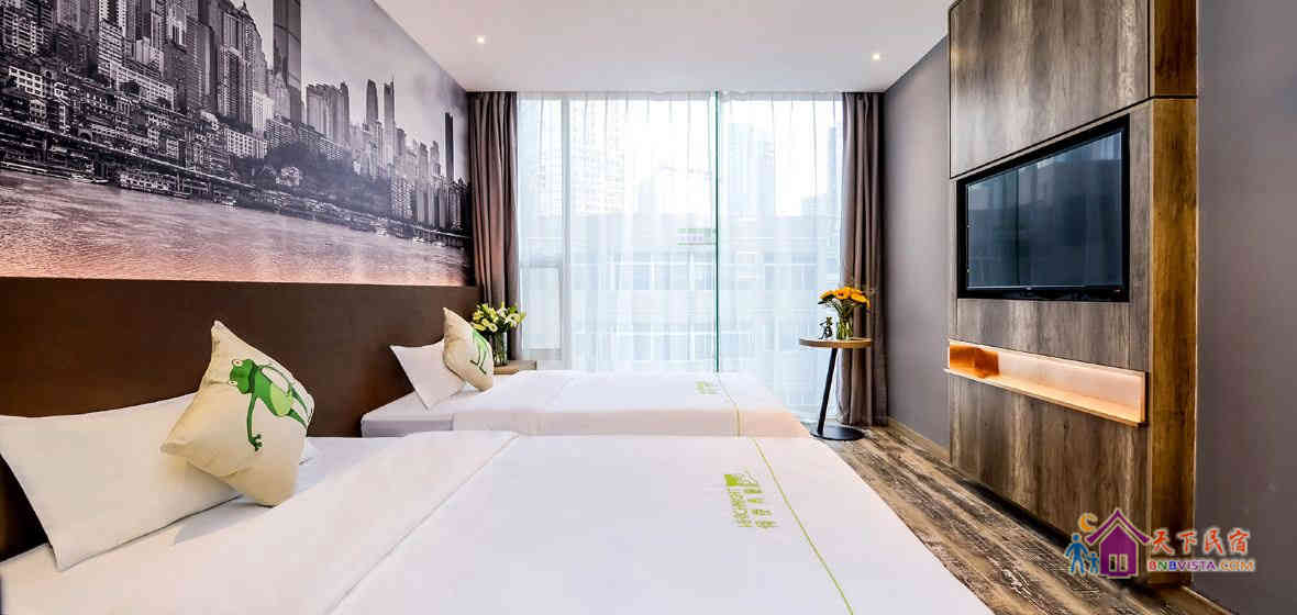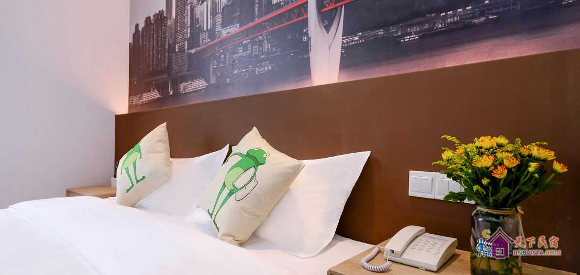 酒店的吉祥物是一只憨态可掬的小青蛙—它的名字叫青青。新青年,新青旅————何夜青年旅行酒店,小青青在重庆等着你!