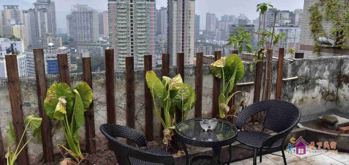 独有的天台花园可供20人聚会,让你们在俯瞰三峡广场全景,远观歌山日出日落的时候和朋友把酒言欢。