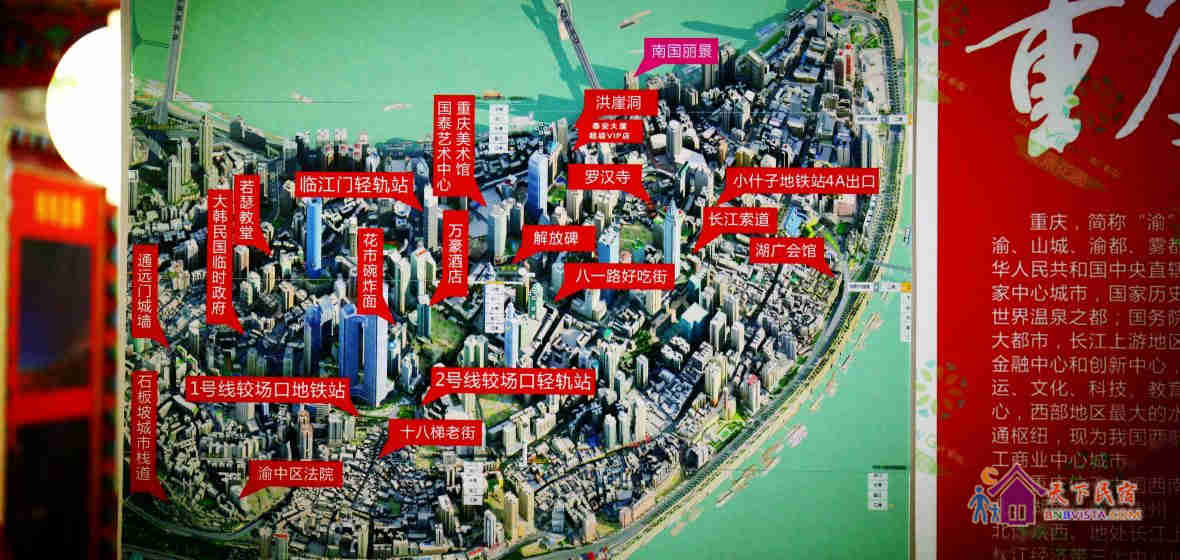 童景花园青年旅社(重庆超级VIP洪崖洞店)位于重庆旅游核心区洪崖洞、解放碑,与地标性建筑解放碑、洪崖洞、国泰艺术中心、大剧院、长江索道、罗汉寺、洋人街等近在咫尺,房间内更能以全方位的角度去欣赏山城重庆的美丽,附近更是重庆特色小吃的聚集地,八一路小吃街、佩姐老火锅、拜抄手、花市豌杂面、石灰市李记串串等,完爆你的味蕾。