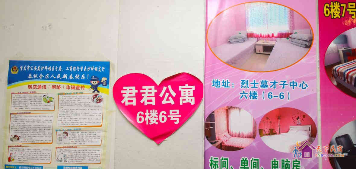 重庆君君旅馆位于重庆市沙坪坝区烈士墓壮志路上,临近旅游景区渣滓洞、白公馆、红岩广场,是四川外国语大学和西南政法大学的邻居,公寓是学生都能承受的亲民价格,装修温馨、干净卫生。