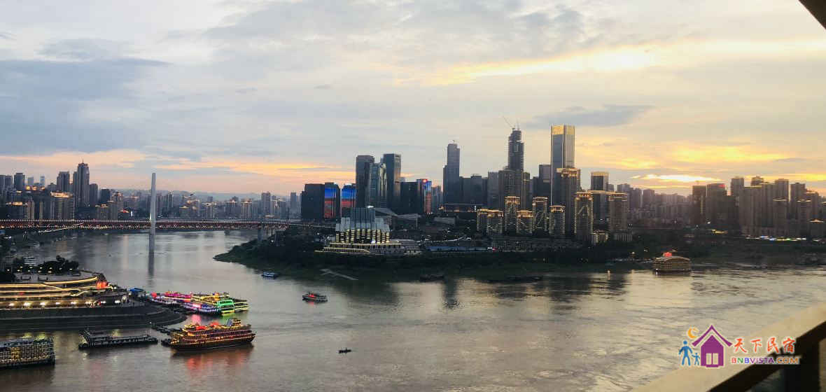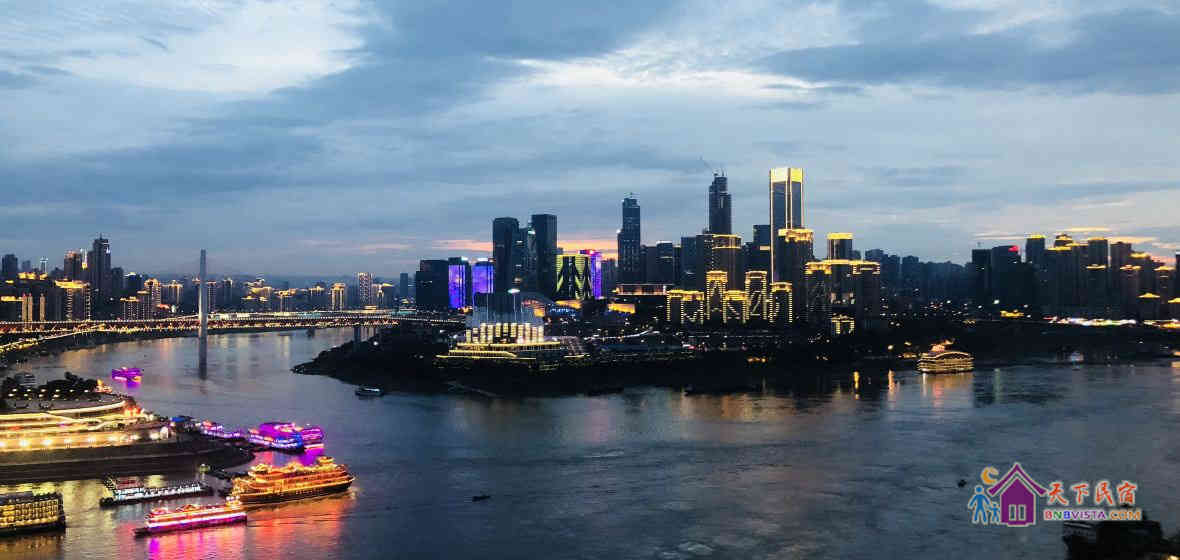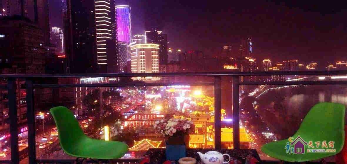 天空畔江而居,绝美江景尽收眼底,在观景阳台居高临下,可以观两江交汇之处,一桥之隔的江对岸就是重庆大剧院及重庆科技馆。天空之城青年旅舎(重庆解放碑洪崖洞江景店)位置交通非常方便,楼下就是洪崖洞景区、滨江路,步行5分钟就进入解放碑步行街、八一路美食街、国泰艺术馆、拍疯狂石头电影的罗汉寺庙、穿梭于长江的重庆过江索道、打铜街民国旧建筑。步行10分钟即可到朝天门广场、城市规划馆、湖广会馆、老重庆风貌十八梯、新华日报旧址凯旋电梯等等,坐车20分钟就可到宋庆龄故居、人民大礼堂、三峡博物馆、皇冠大扶梯、鹅岭观景……地铁45分钟可到唯一置身于市区的磁器口古镇、环境美爆的四川美院新老校区,朝天门坐船20分钟游览过江即可到对岸的洋人街体验搞怪。