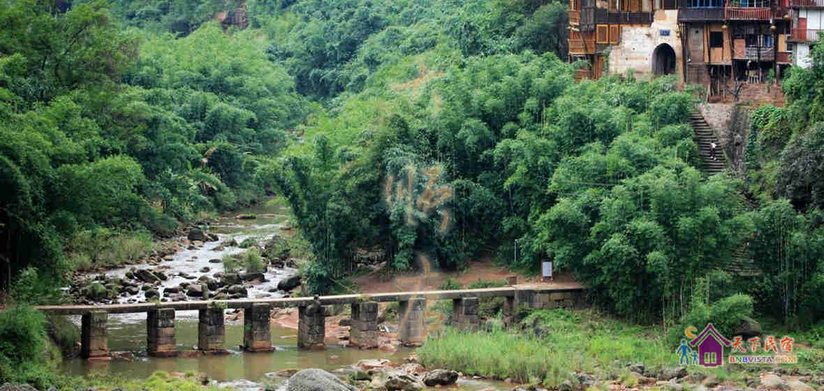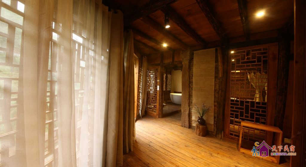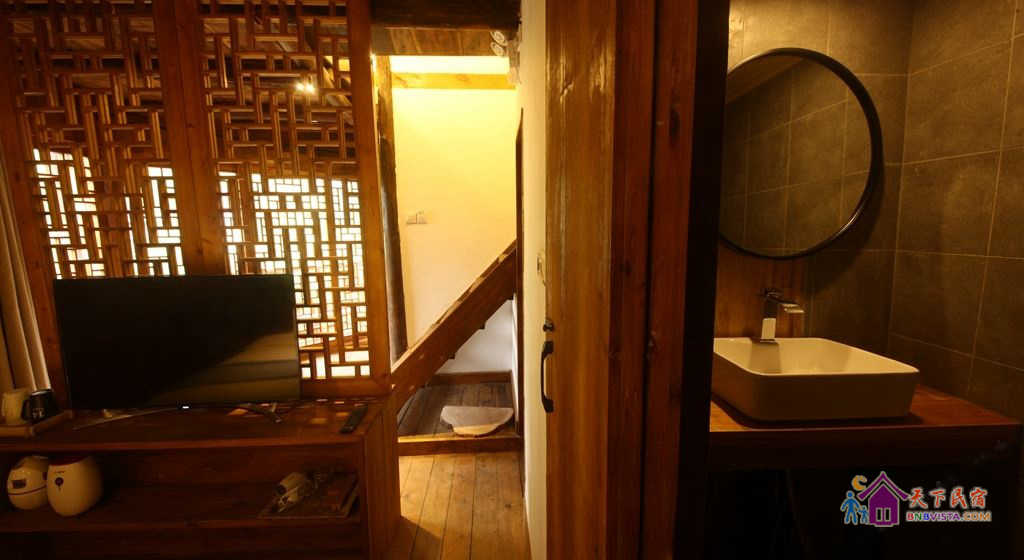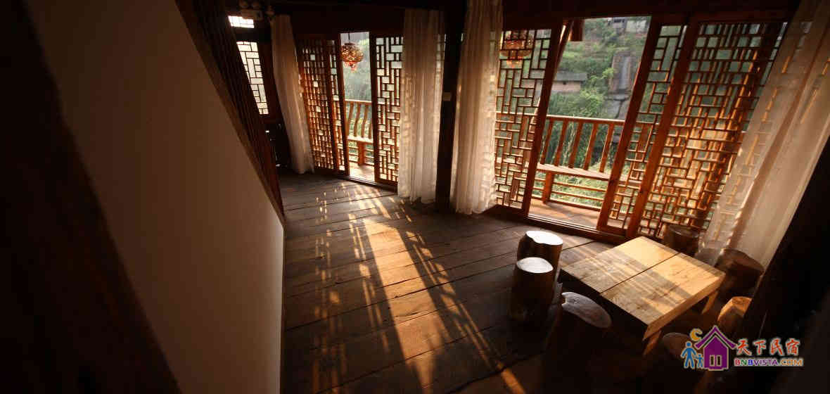 民宿坐落在丙安古镇老街,雄踞东华门,扇形展开,大弧度对着秀美河景。这是一座101年老宅,是丙安古镇最大最具历史意义的吊脚楼,2015年,北京一对年轻夫妇带着1岁的女儿迁居于此,开始了吊脚楼民宿的改造,国内知名设计师独立设计,在保持了吊脚楼古朴外观和神奇的木质结构基础上,通过各种手段进行防潮、隔音、美化装饰,并且每个房间都有独立卫生间,卫浴用品和床品都按着杭州高端民宿的标准采购,加上全面WiFi覆盖,如今的古老吊脚楼焕然一新,既有情调,又十分舒适。