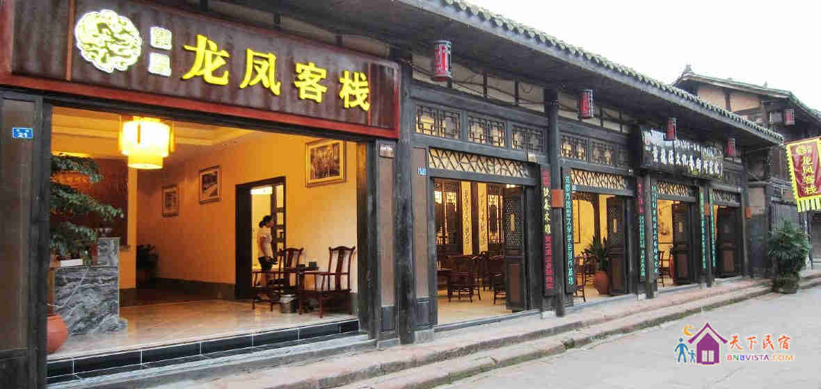 黄龙溪龙凤客栈位于被誉为“中国十大水乡小镇”、“四川省历史文化古镇”的成都市双流县黄龙溪古镇,以其700余年的悠久历史,吸引着各地旅人及电影制作方,被称为“中国好莱坞”。