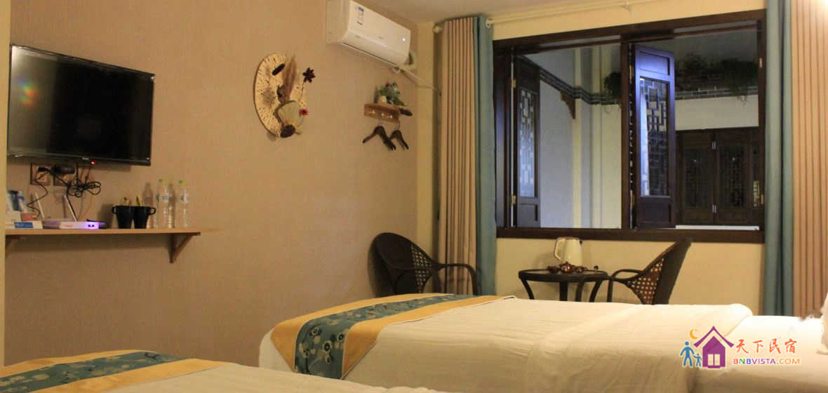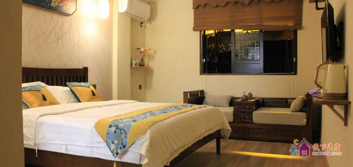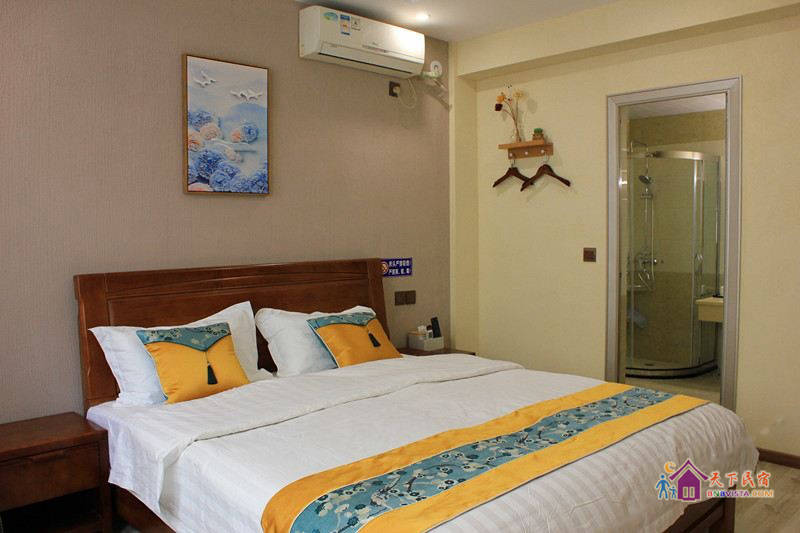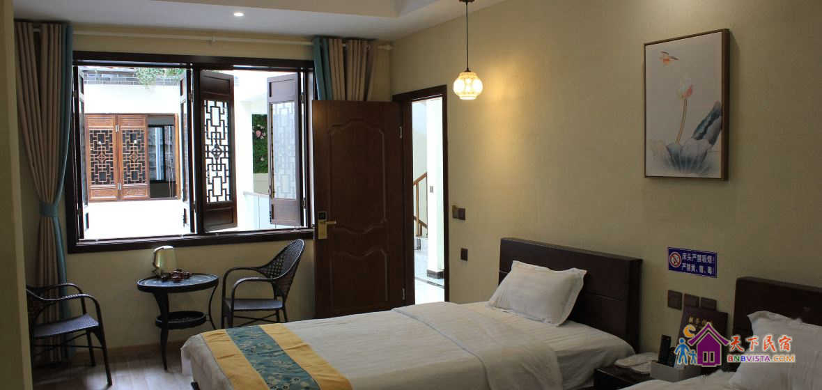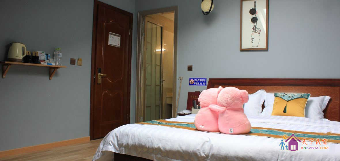 这是一家以民宿为主题的客栈,客房干净整洁全部采用新中式装修风格,简单而富有小情调。室内配置空调,24小时热水,独立卫浴,秉承对每一位客人的认真负责,希望每一位客人入住都有回家的感觉。
