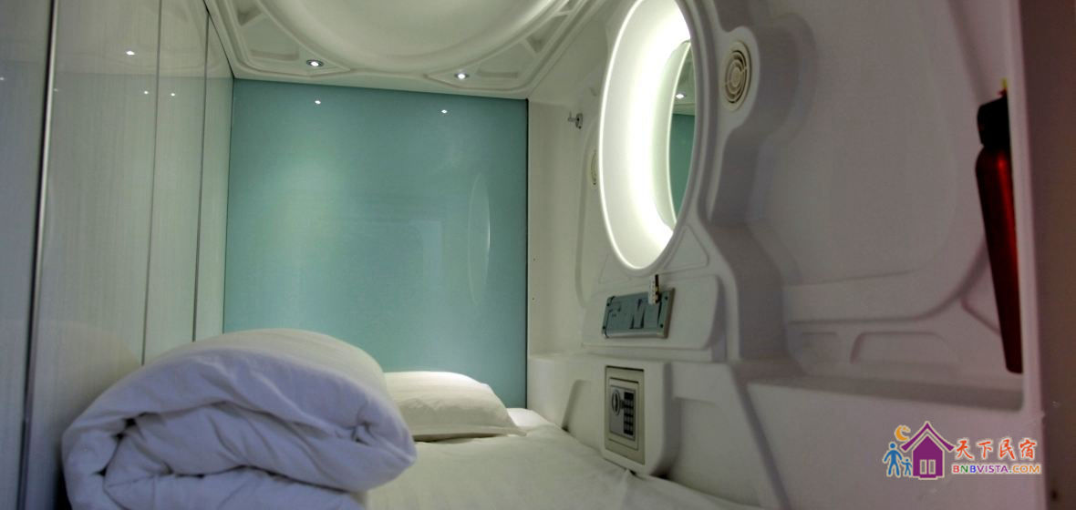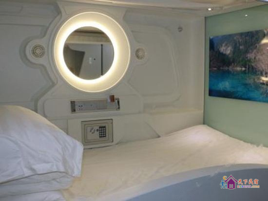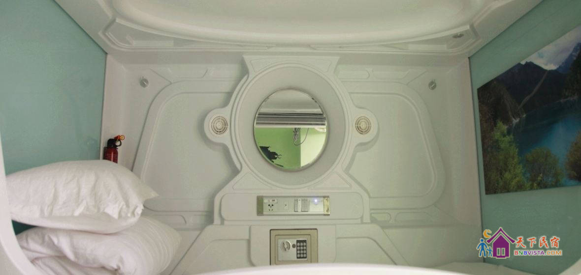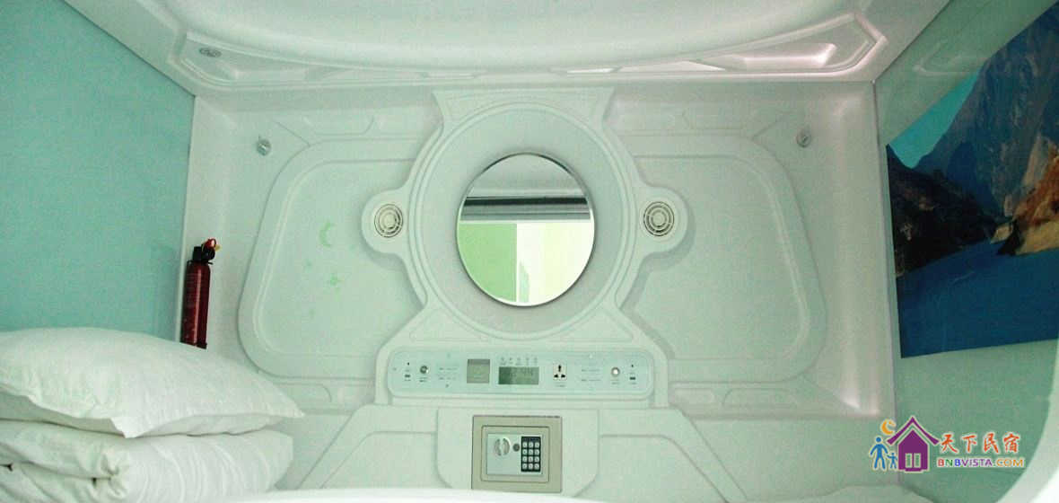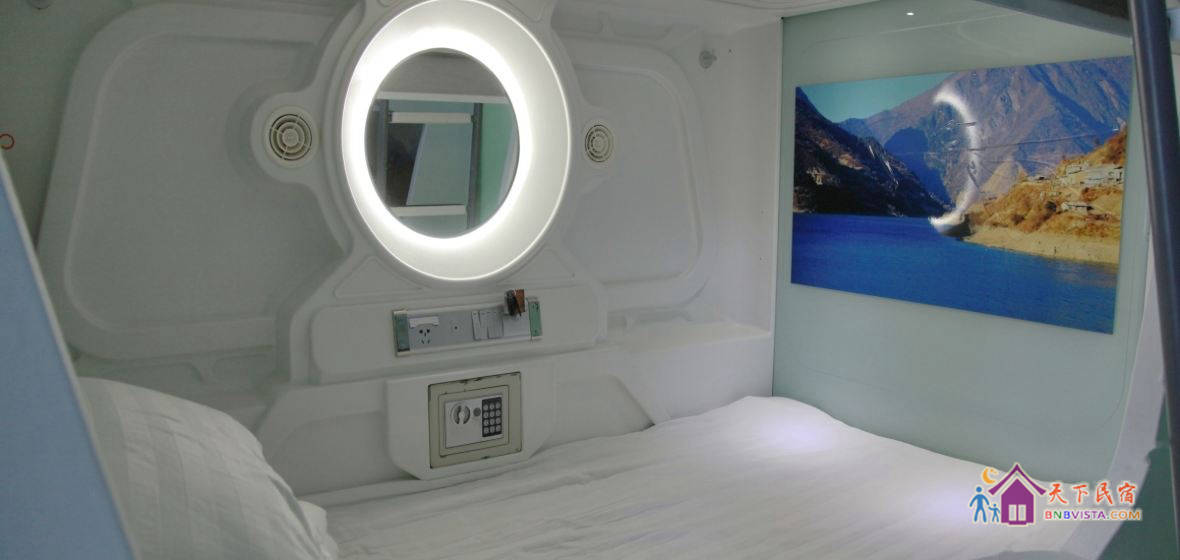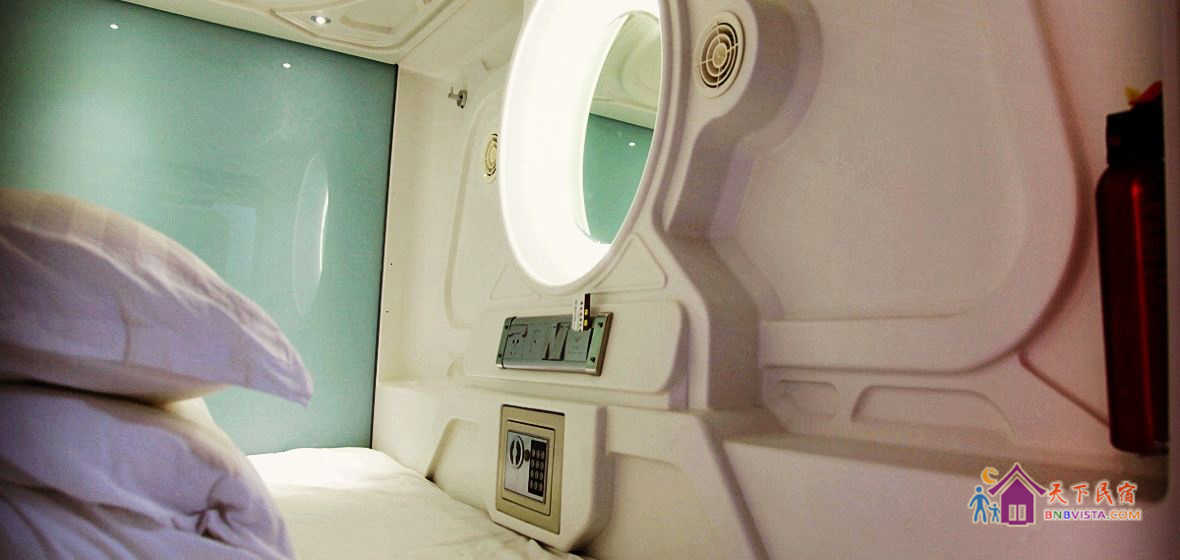 每个太空舱都是一个独立私密的空间,分时尚竖舱和豪华横舱,舱内配照明系统、负离子通风系统、保险柜、充电插座、USB接口、梳妆台,舒适的环境大大提高您的睡眠质量。公共区域监控全覆盖,保证您的安全。
